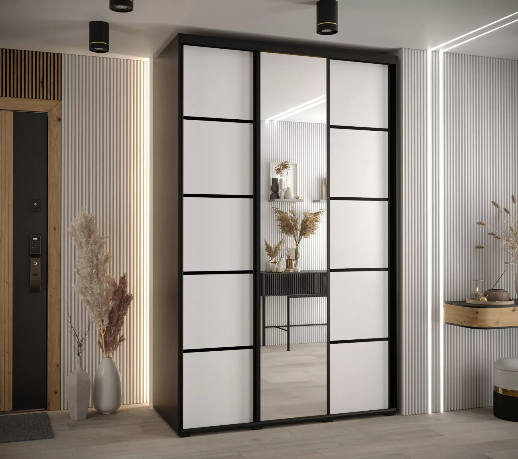 Šatní skříň YVONA 5 - 160/60 cm, černá / bílá / černá