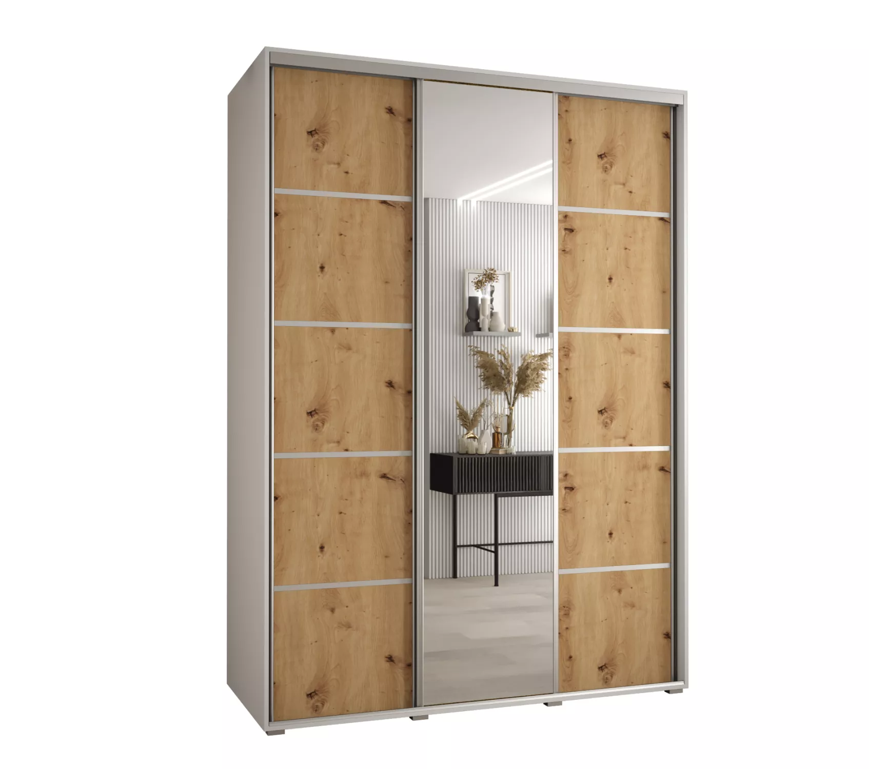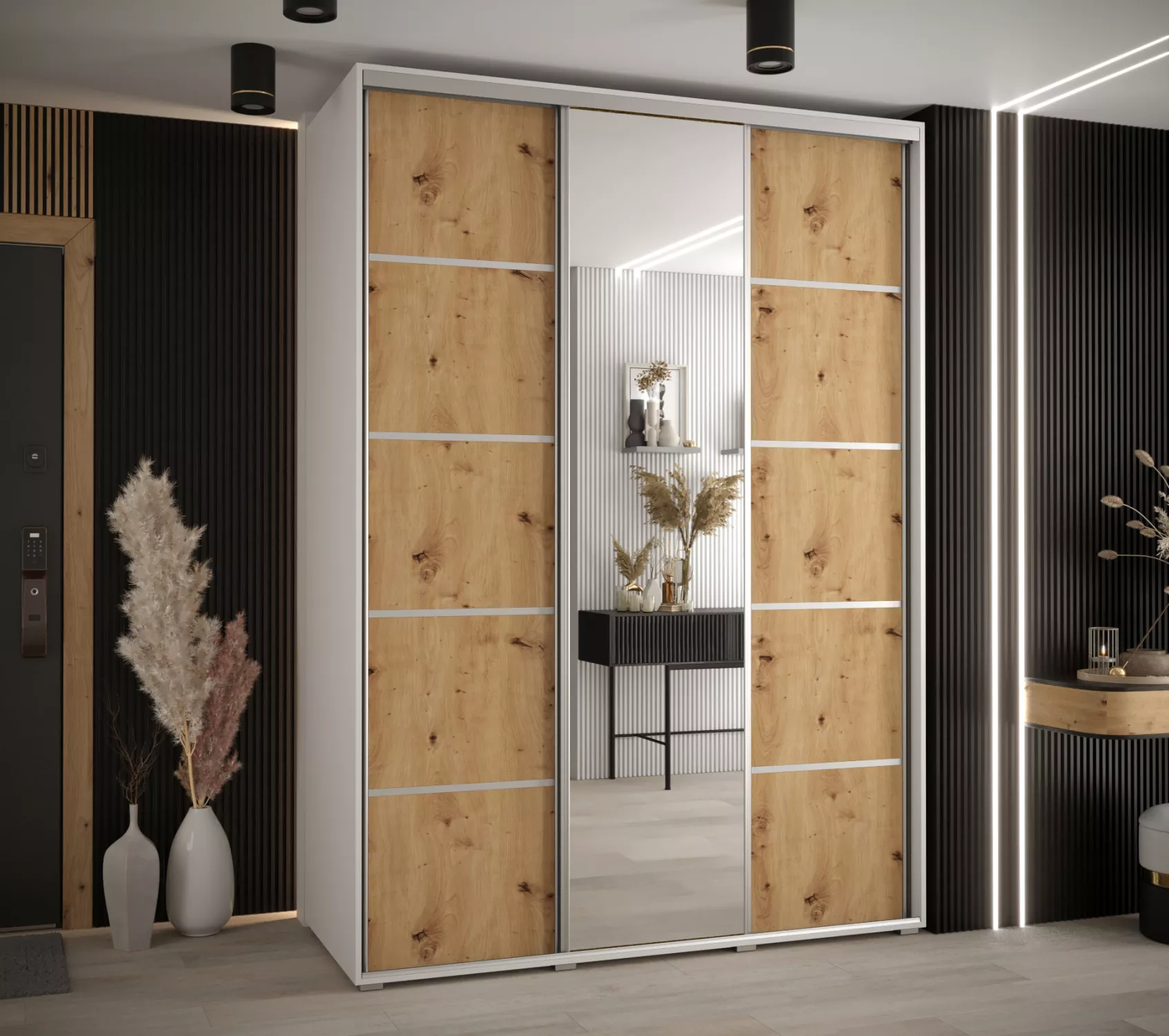 Šatní skříň YVONA 5 - 170/60 cm, bílá / dub artisan / stříbrná