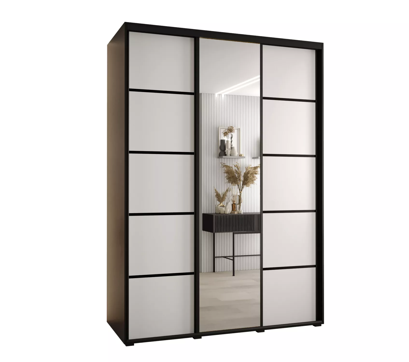 Šatní skříň YVONA 5 - 180/60 cm, černá / bílá / černá