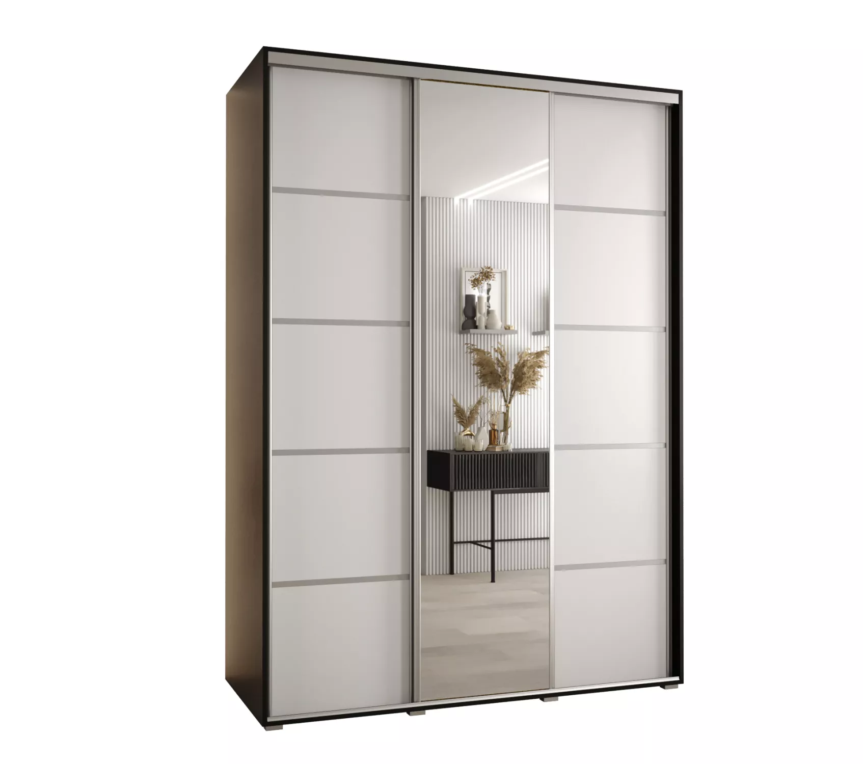Šatní skříň YVONA 5 - 180/60 cm, černá / bílá / stříbrná