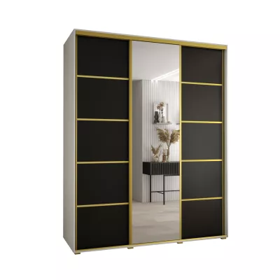 Šatní skříň YVONA 5 - 190/60 cm, bílá / černá / zlatá