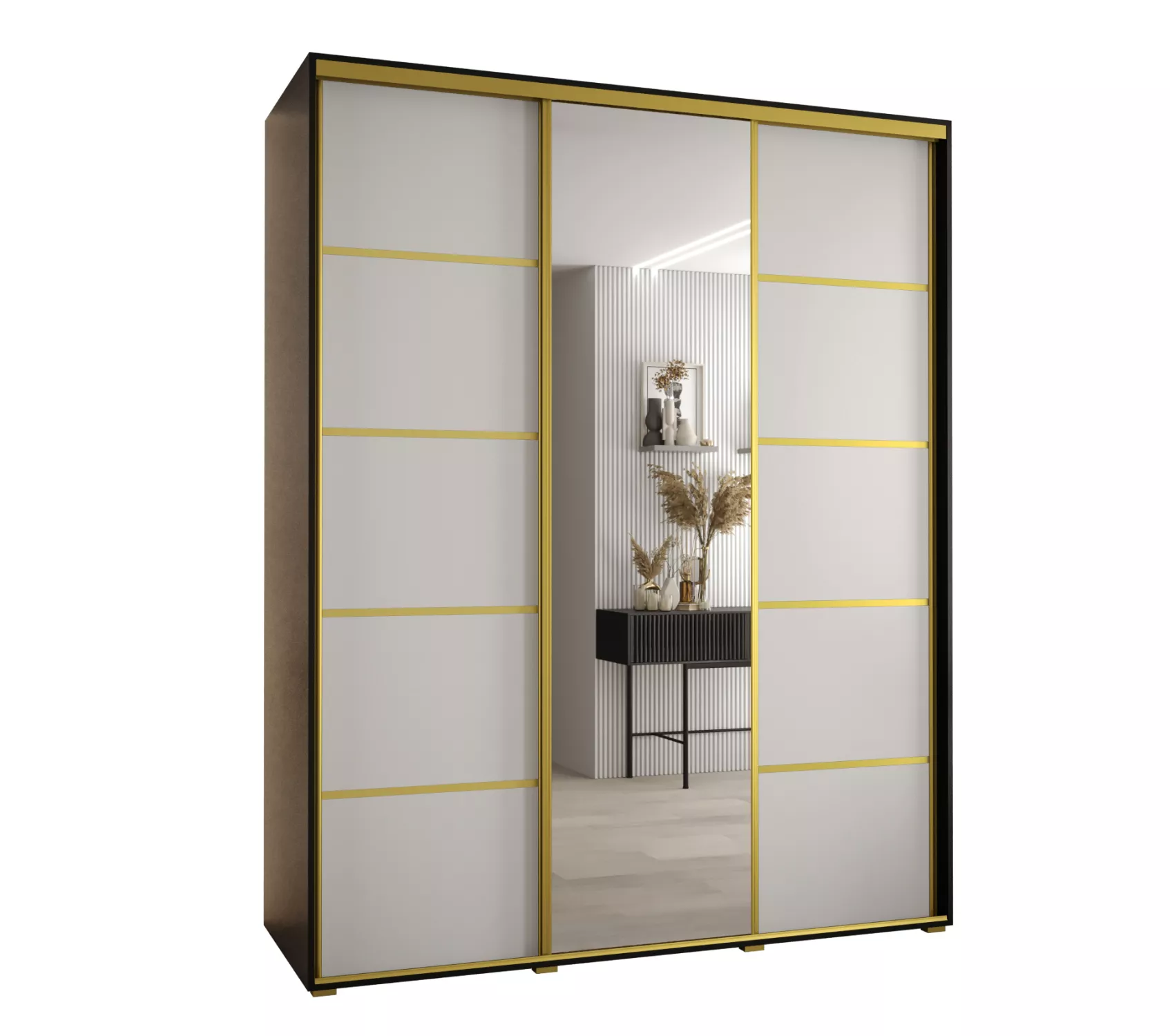Šatní skříň YVONA 5 - 190/60 cm, černá / bílá / zlatá