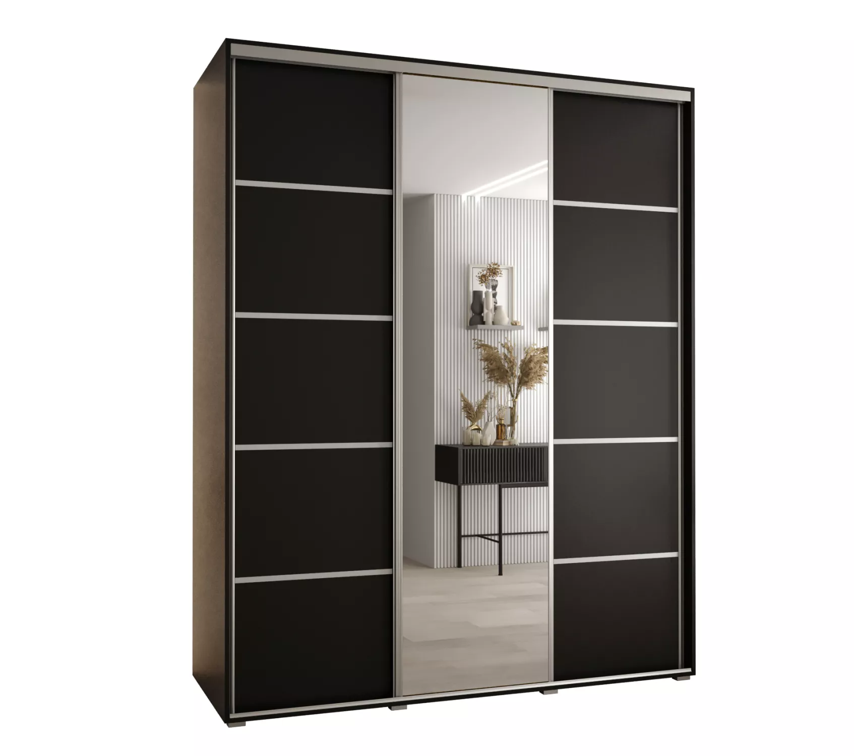 Šatní skříň YVONA 5 - 190/60 cm, černá / stříbrná