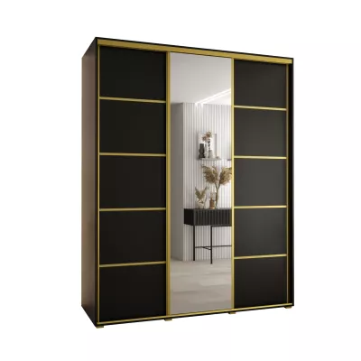Šatní skříň YVONA 5 - 200/60 cm, černá / zlatá