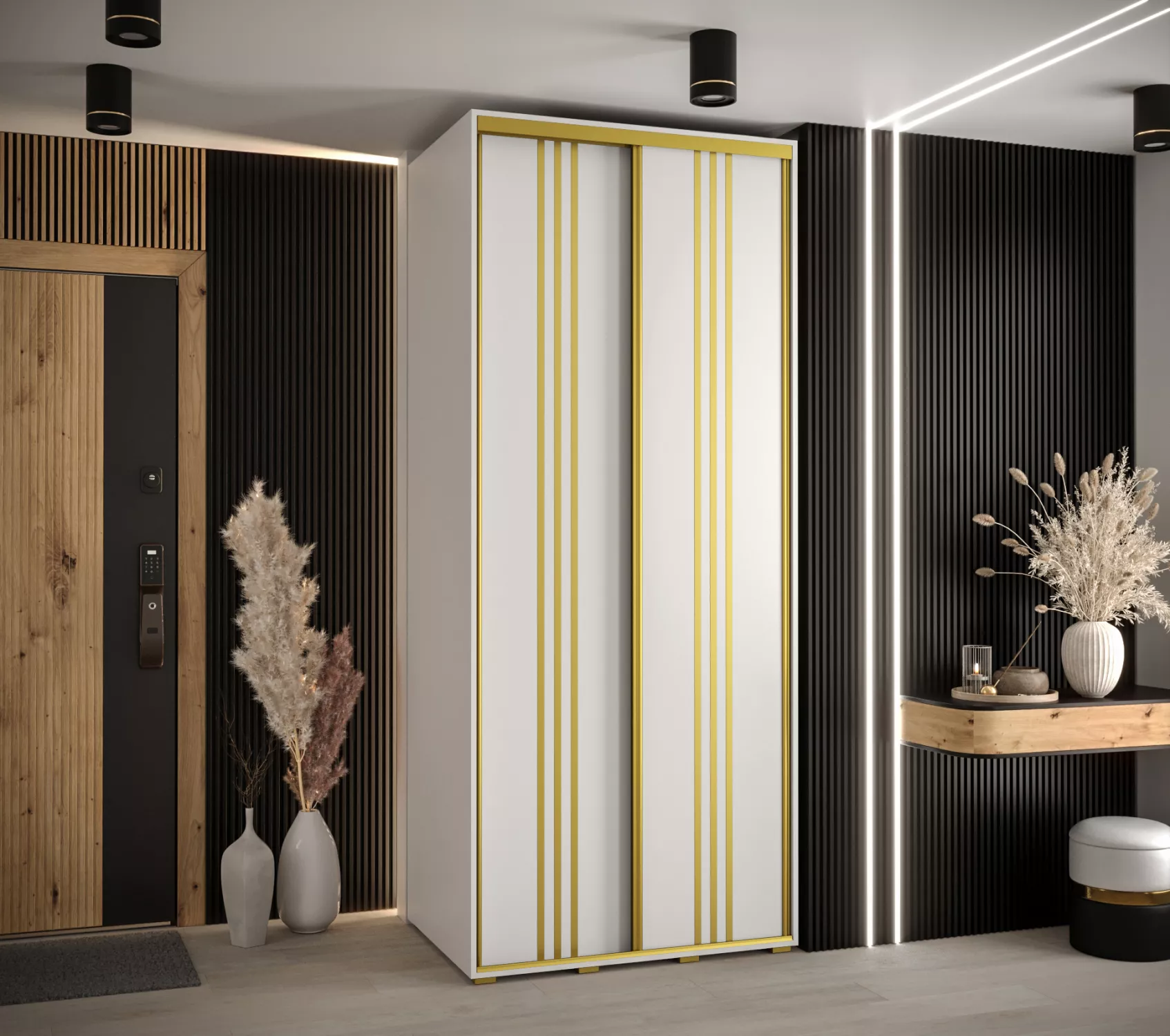 Šatní skříň YVONA 6 - 100/60 cm, bílá / zlatá