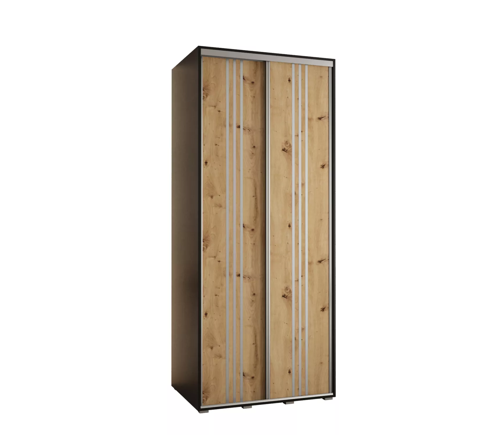 Šatní skříň YVONA 6 - 100/60 cm, černá / dub artisan / stříbrná