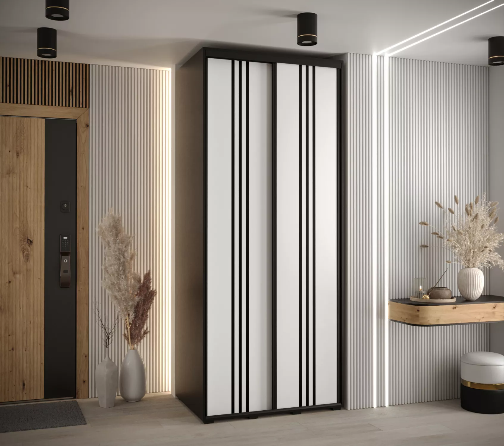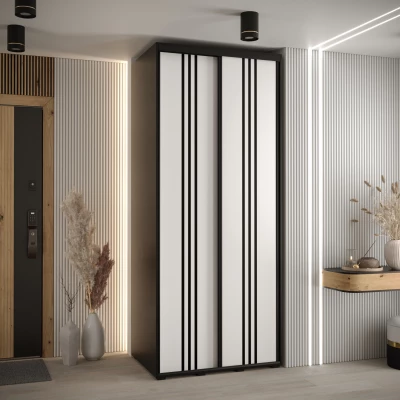Šatní skříň YVONA 6 - 100/60 cm, černá / bílá / černá