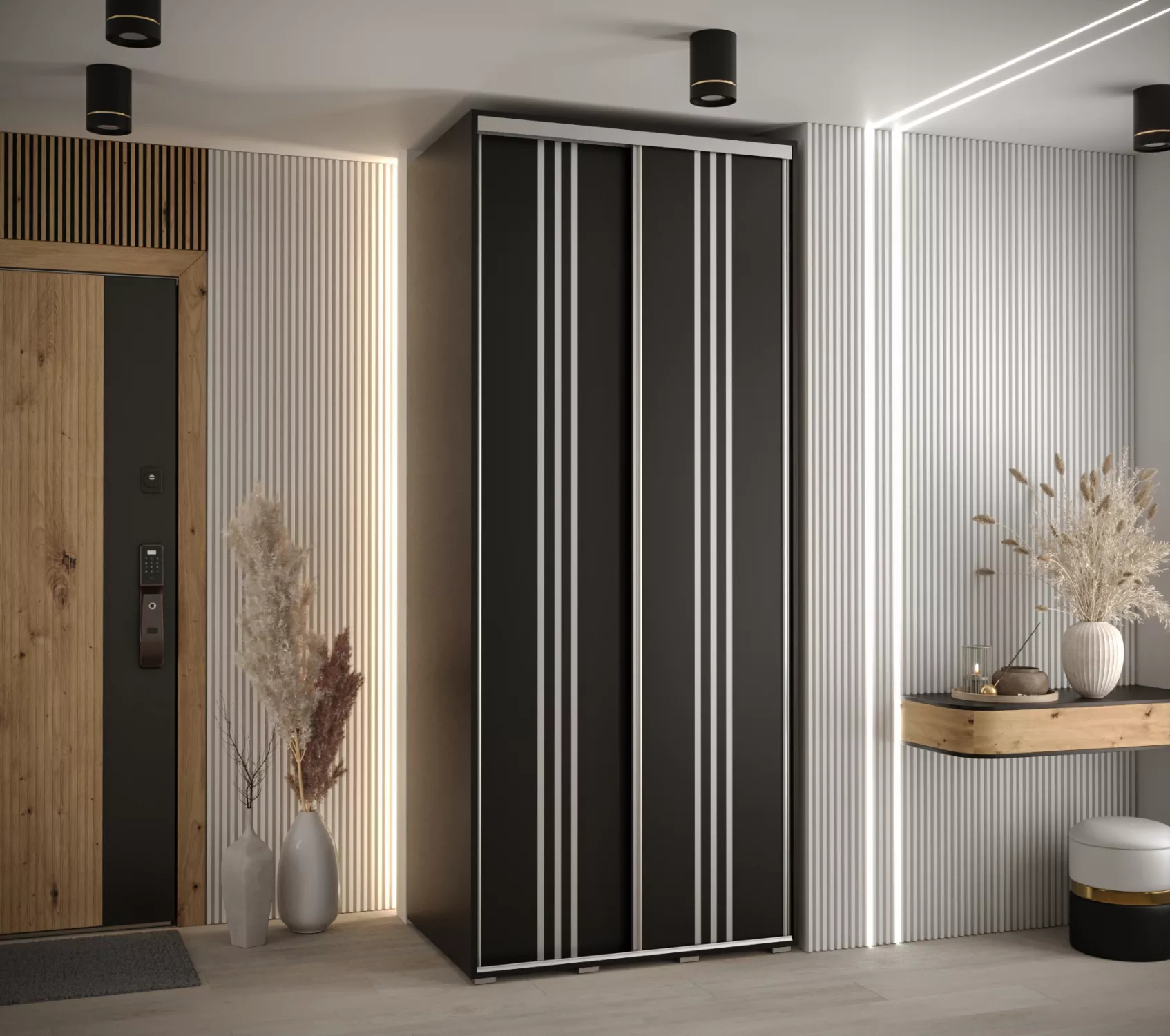 Šatní skříň YVONA 6 - 100/60 cm, černá / stříbrná