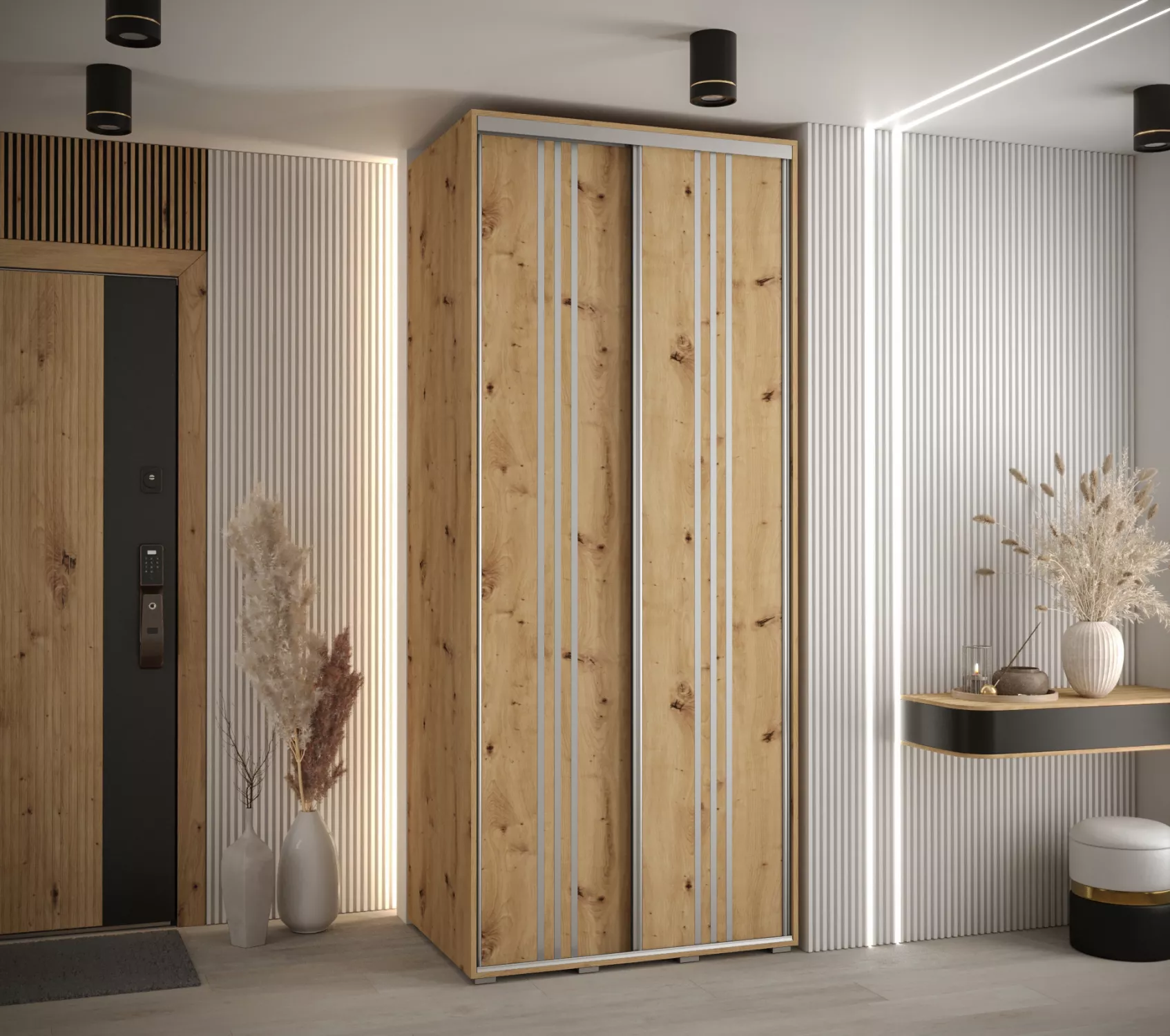 Šatní skříň YVONA 6 - 110/60 cm, dub artisan / stříbrná