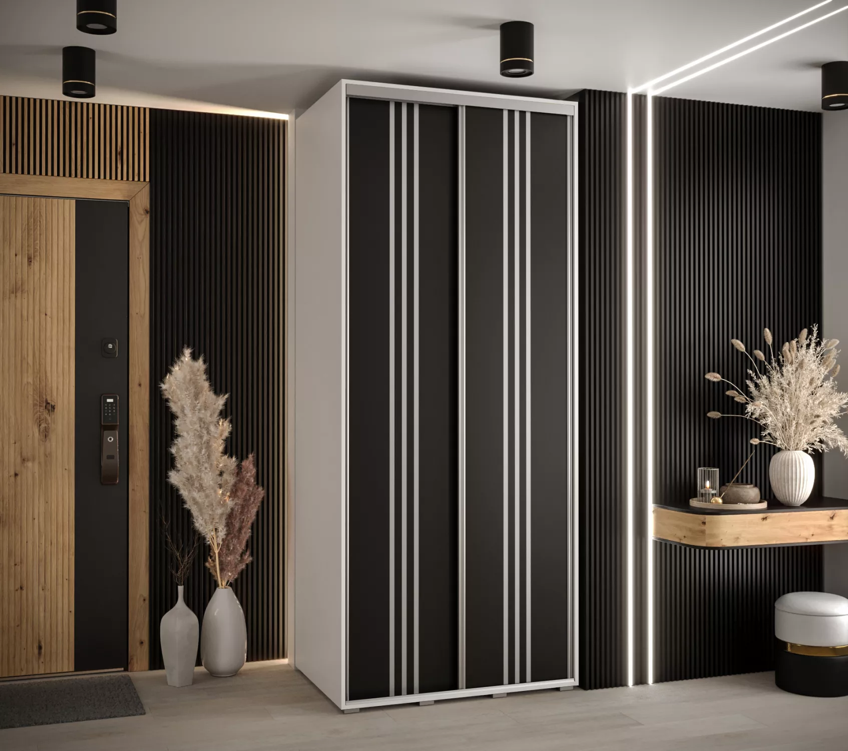 Šatní skříň YVONA 6 - 120/60 cm, bílá / černá / stříbrná