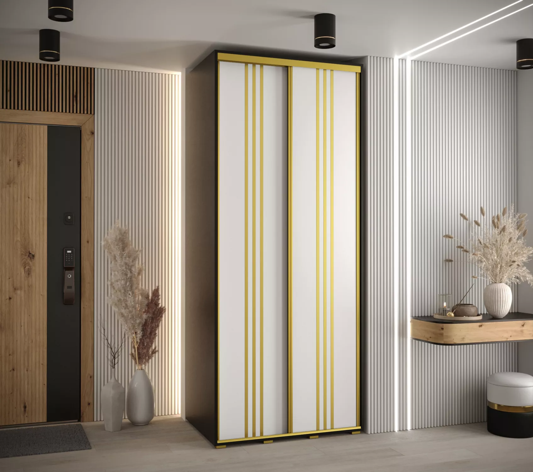 Šatní skříň YVONA 6 - 120/60 cm, černá / bílá / zlatá