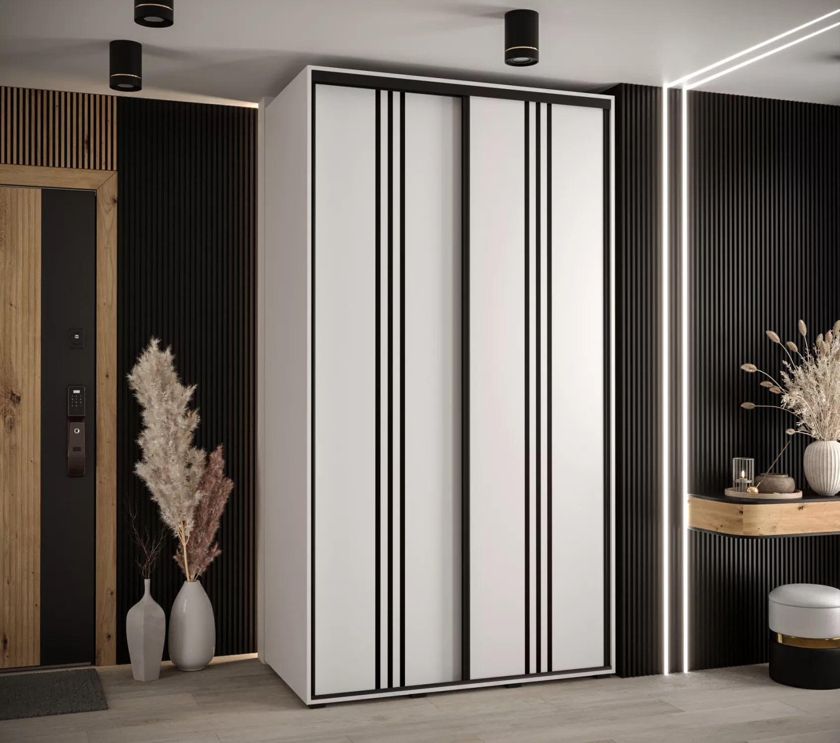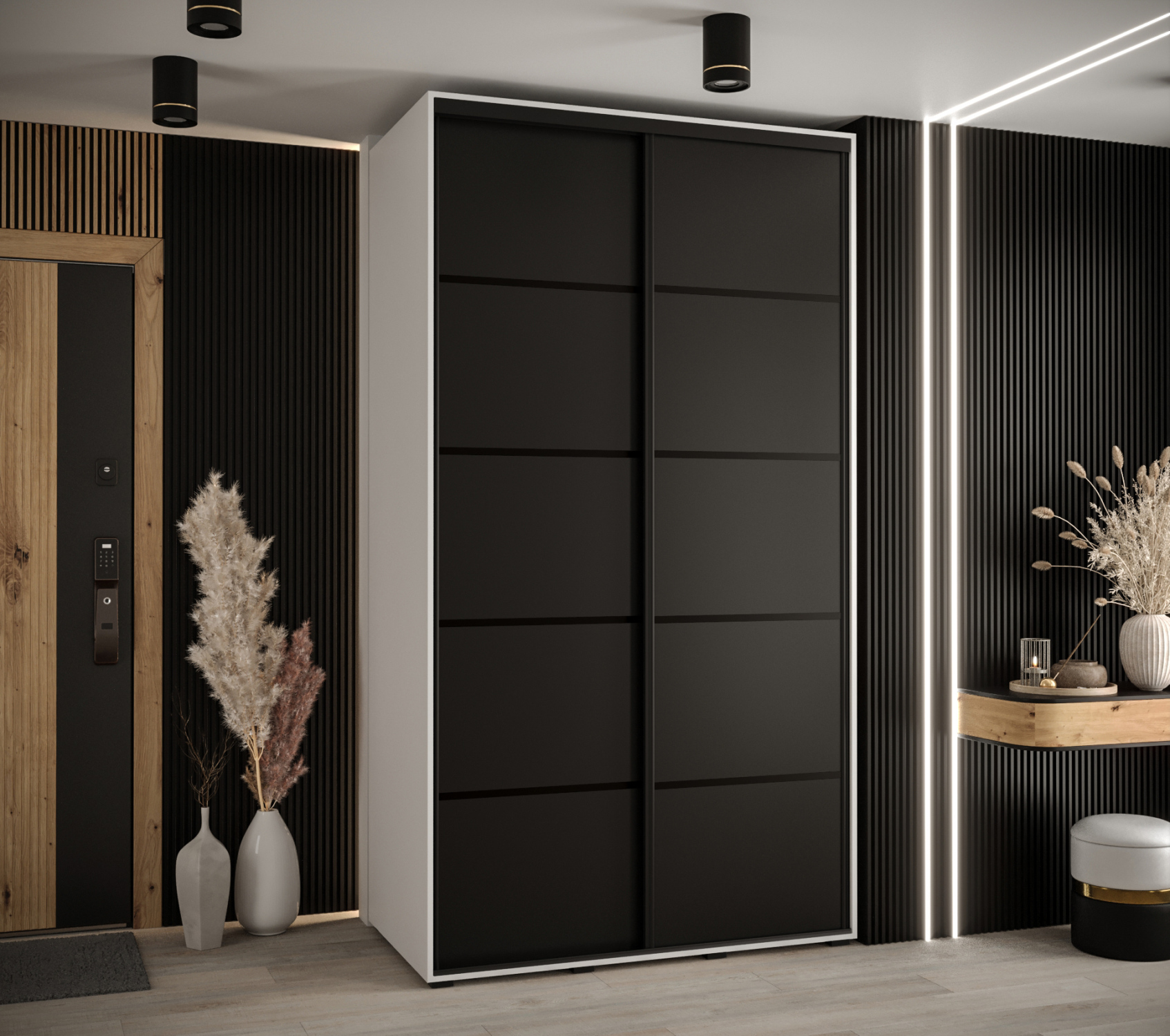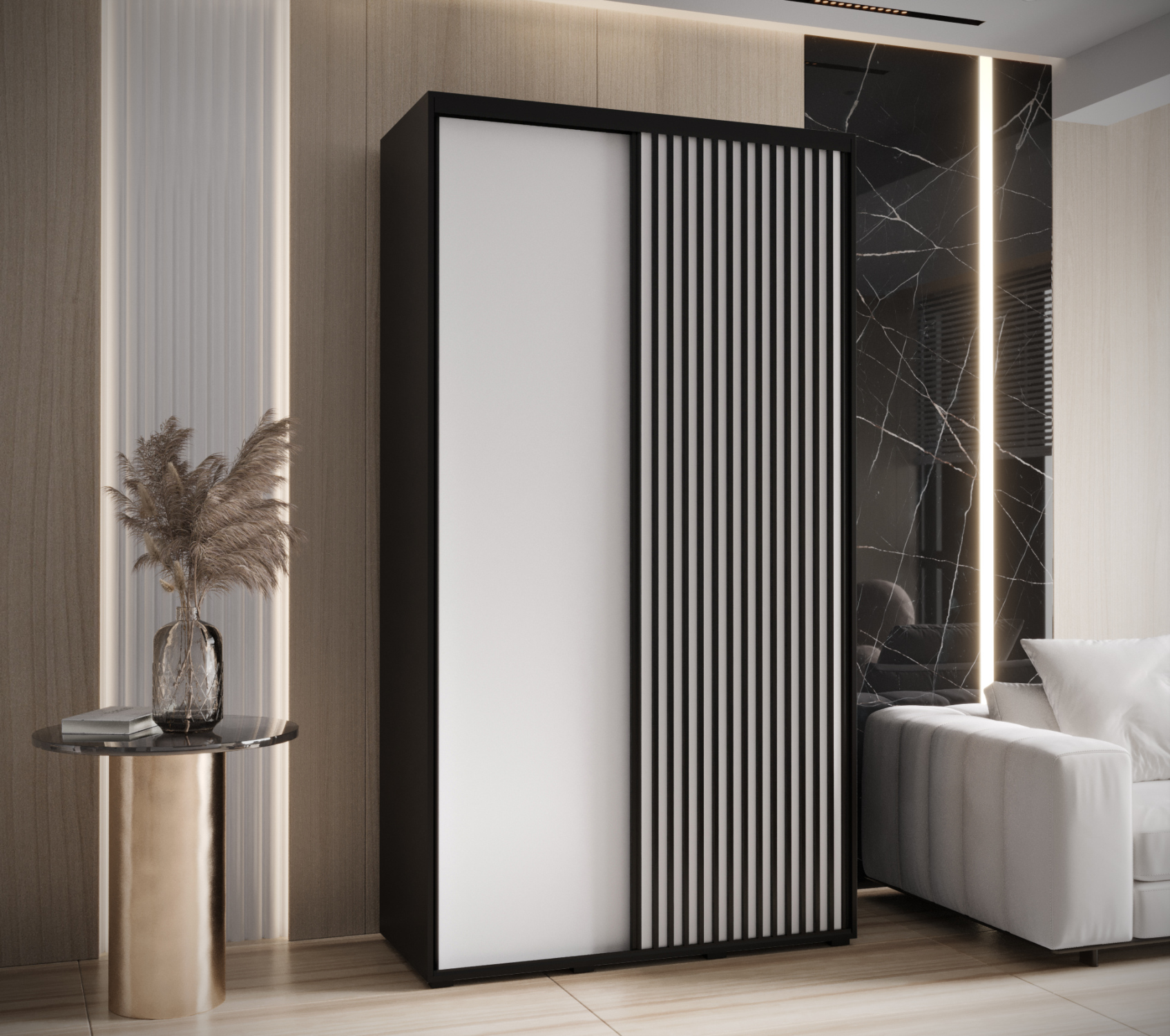 Šatní skříň YVONA 6 - 130/60 cm, bílá / černá
