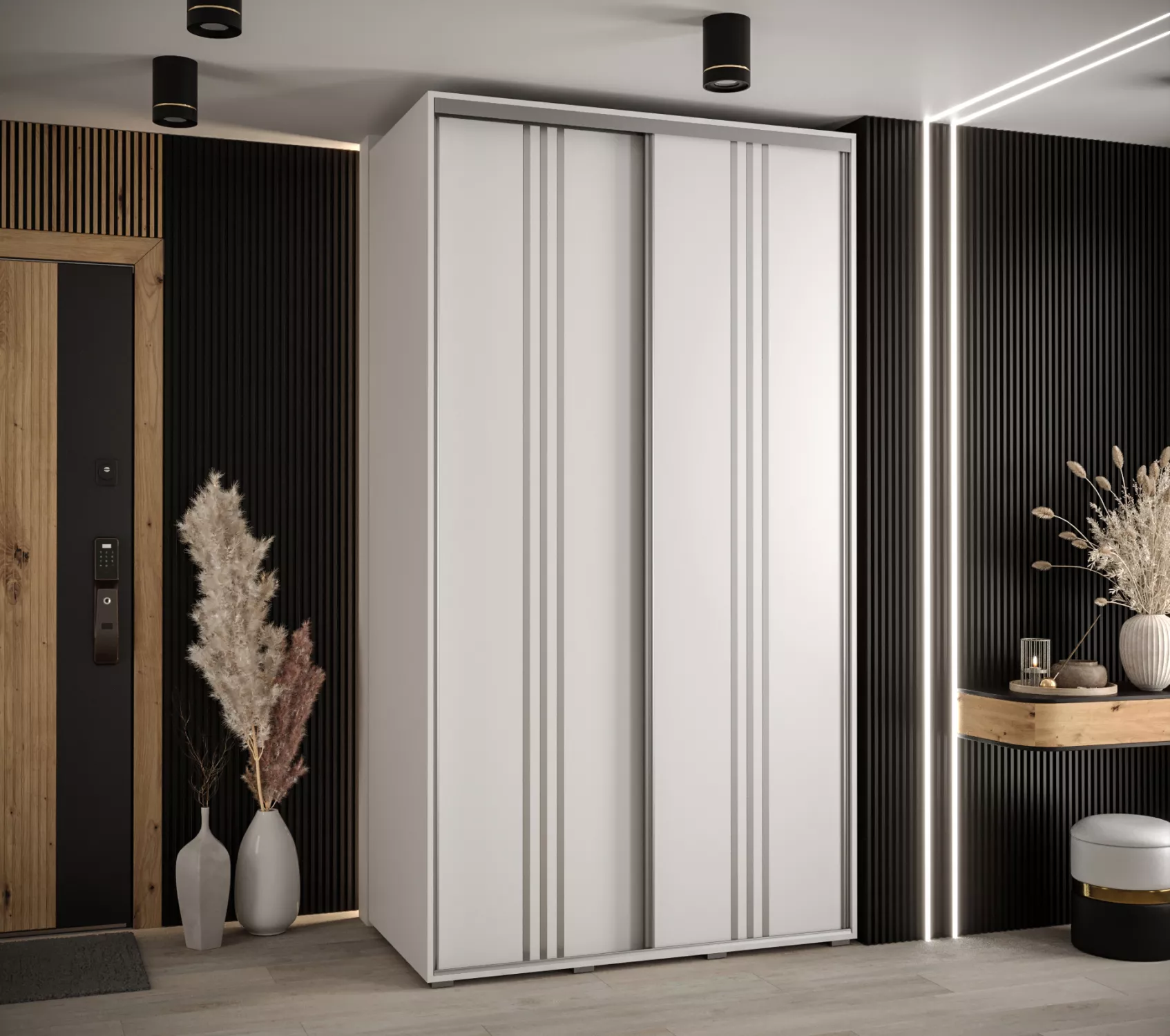 Šatní skříň YVONA 6 - 130/60 cm, bílá / stříbrná
