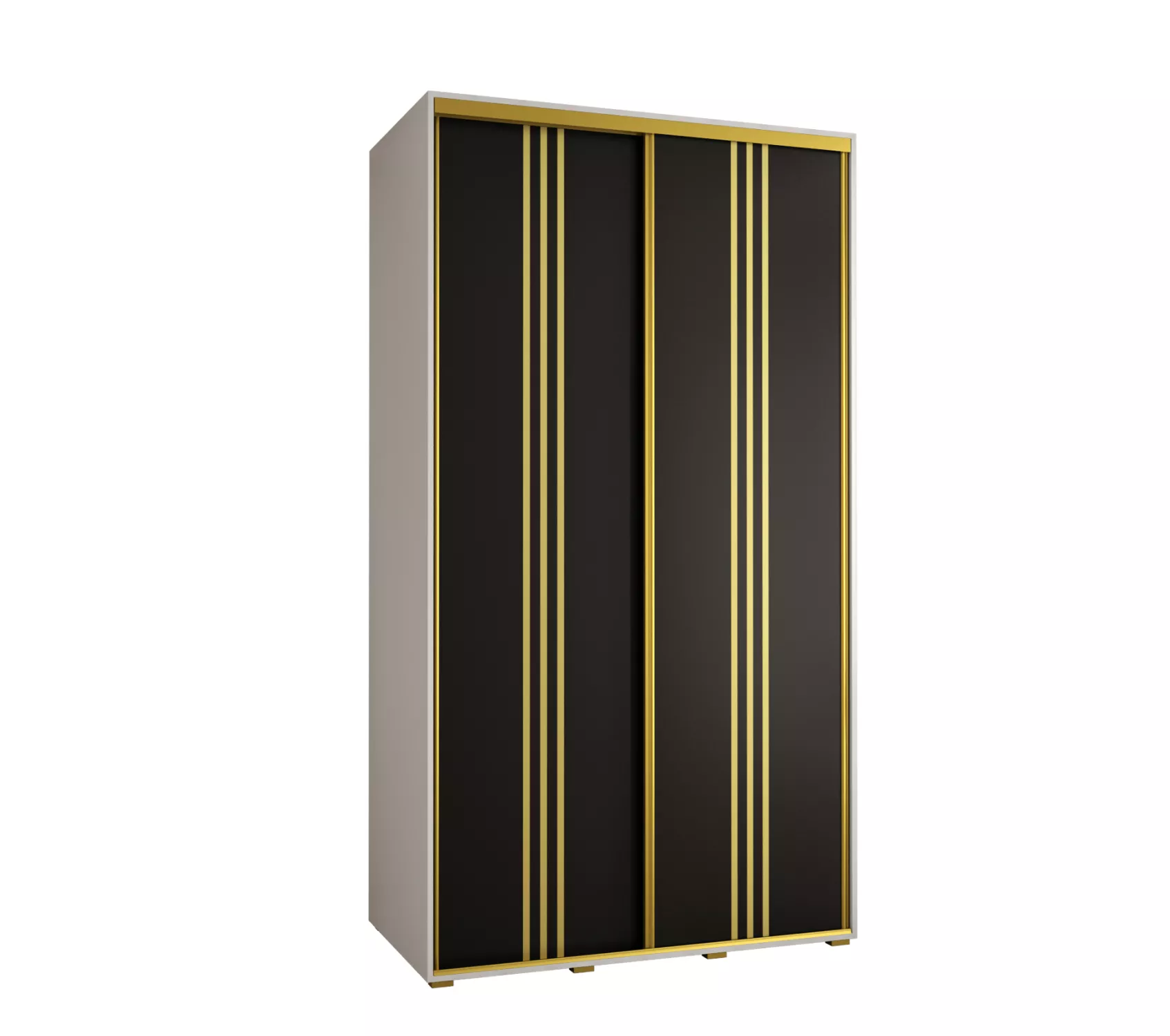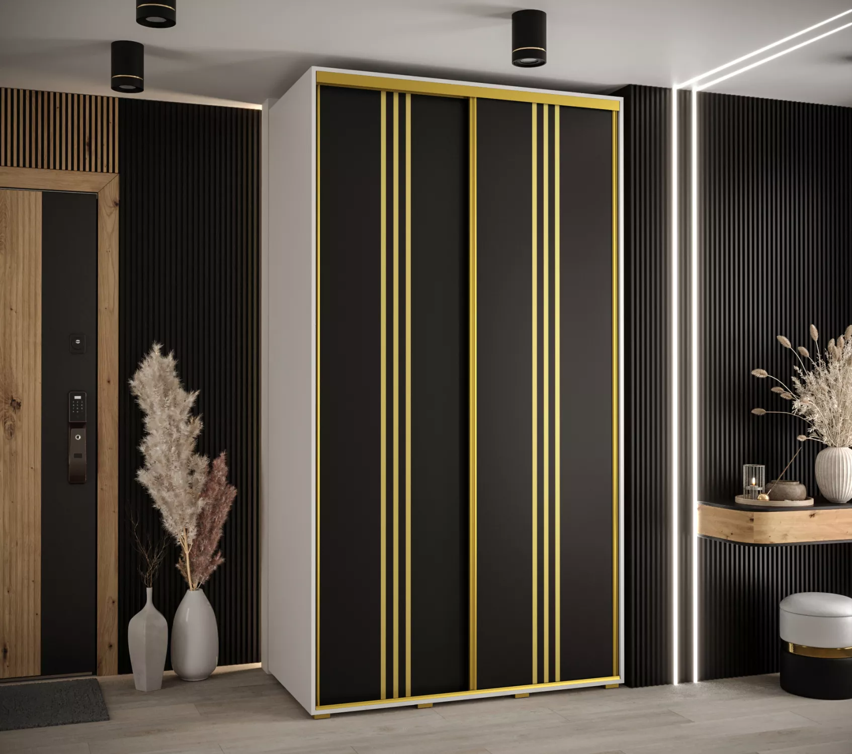 Šatní skříň YVONA 6 - 140/60 cm, bílá / černá / zlatá