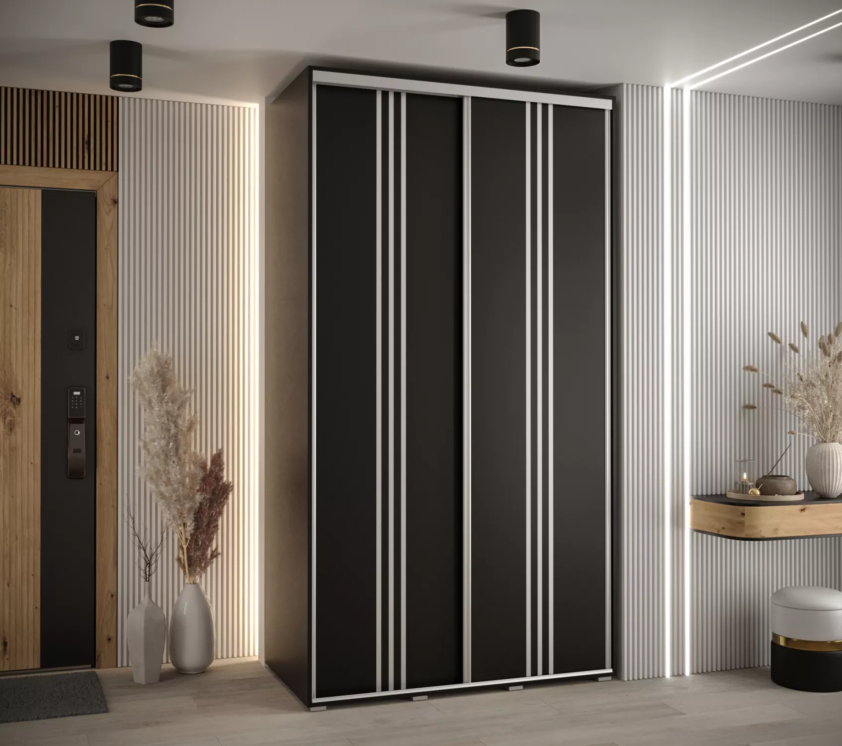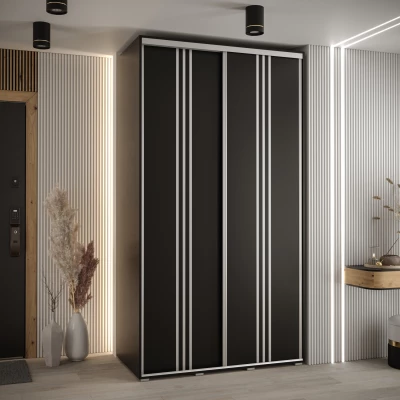 Šatní skříň YVONA 6 - 140/60 cm, černá / stříbrná