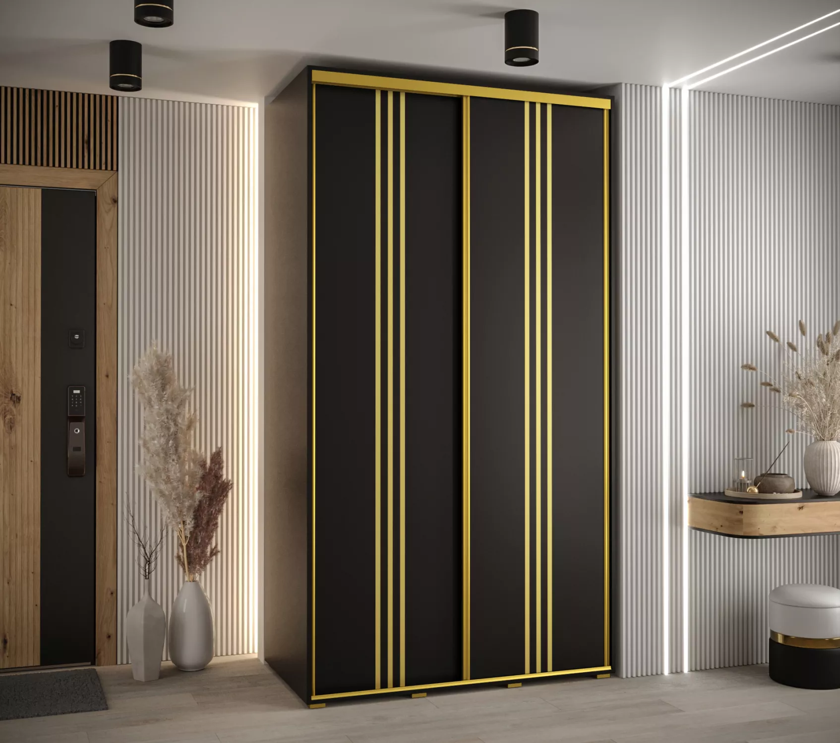 Šatní skříň YVONA 6 - 140/60 cm, černá / zlatá