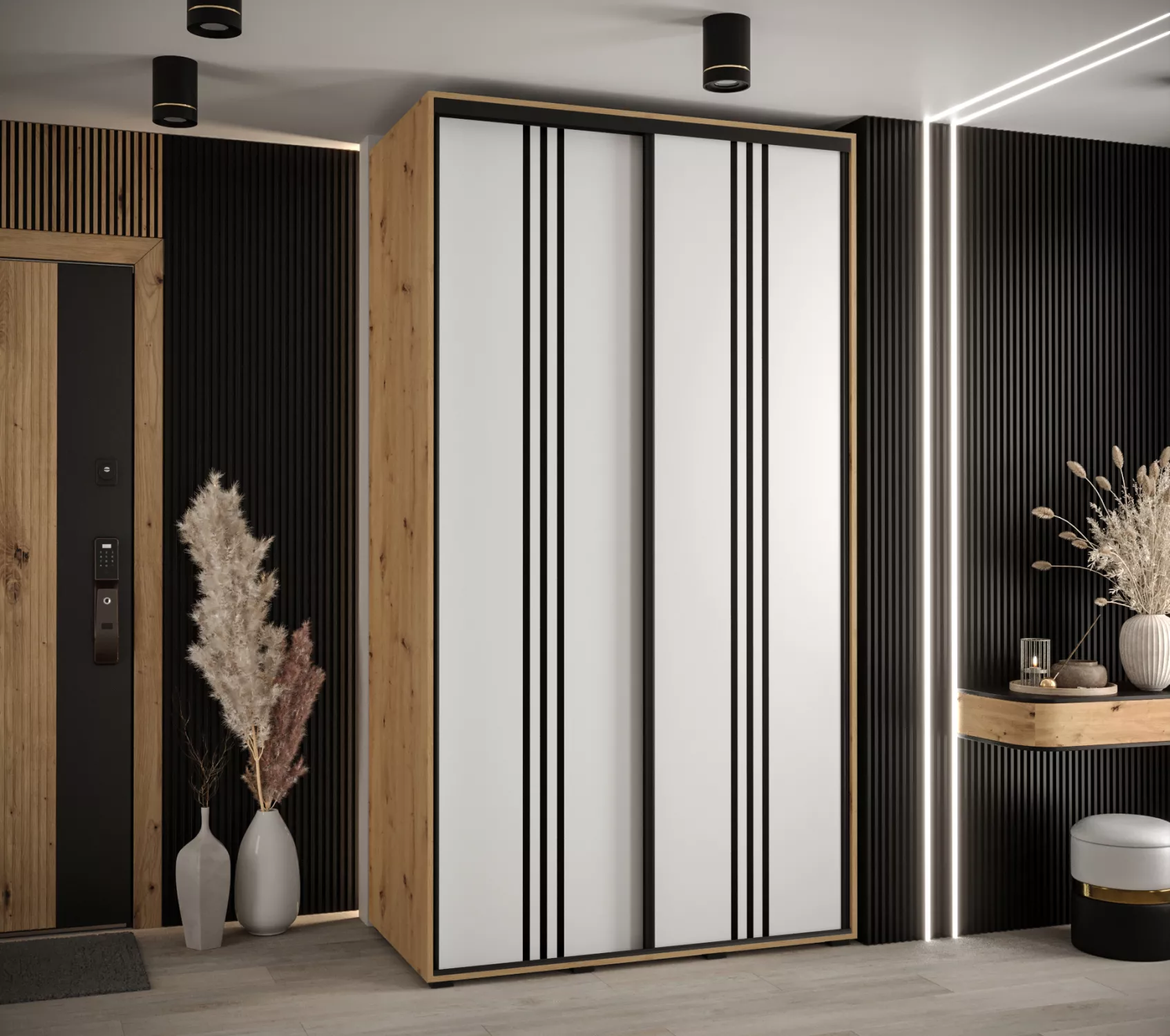 Šatní skříň YVONA 6 - 140/60 cm, dub artisan / bílá / černá
