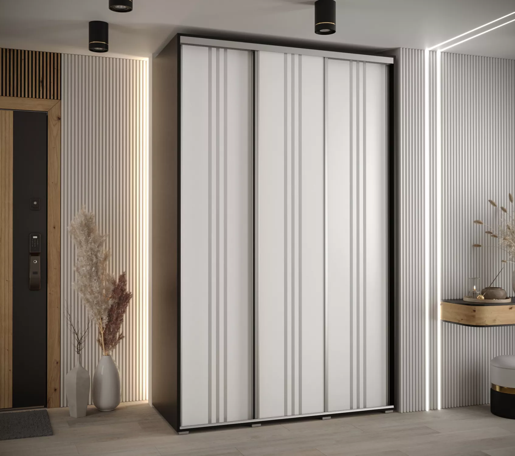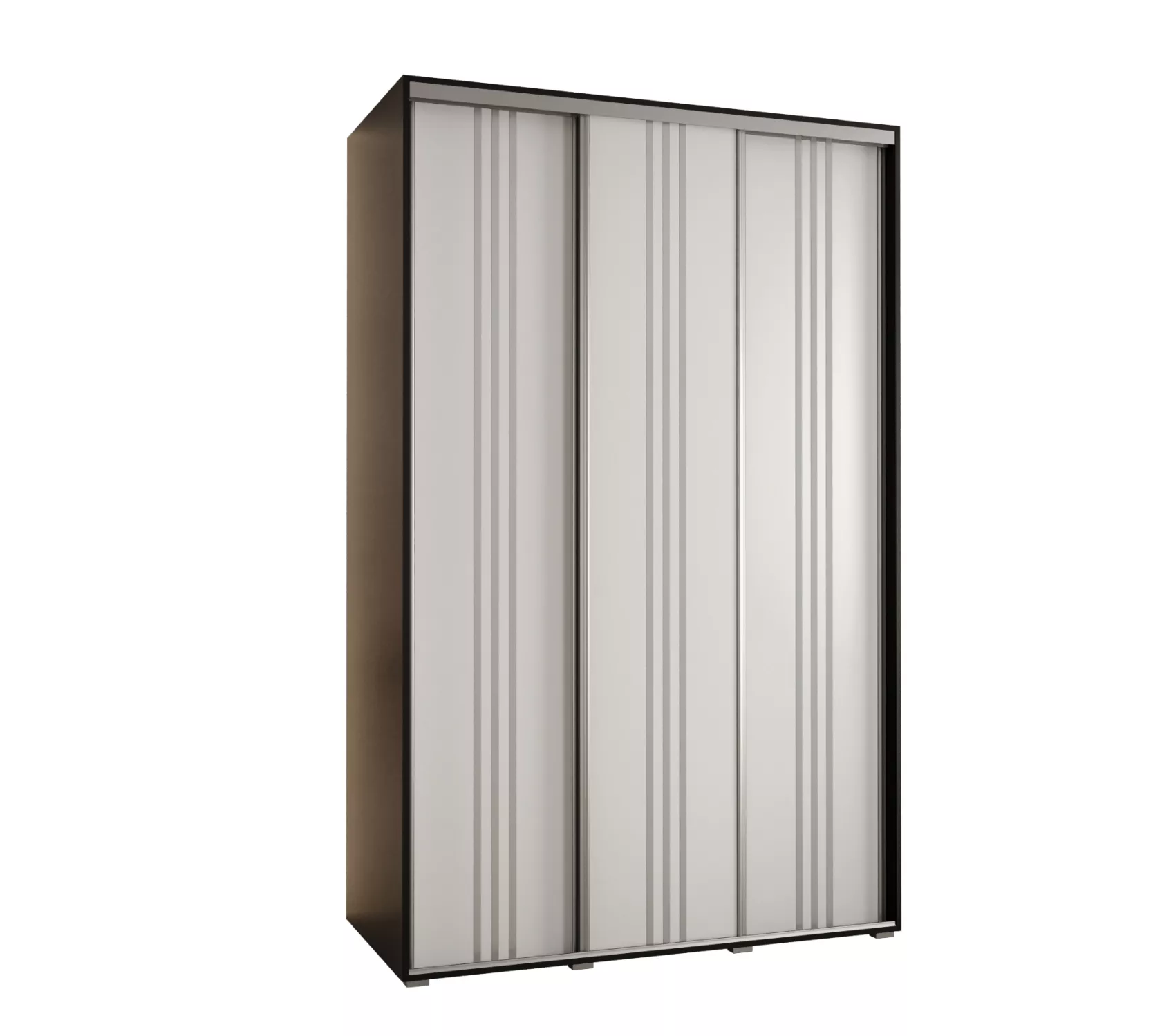 Šatní skříň YVONA 6 - 150/60 cm, černá / bílá / stříbrná