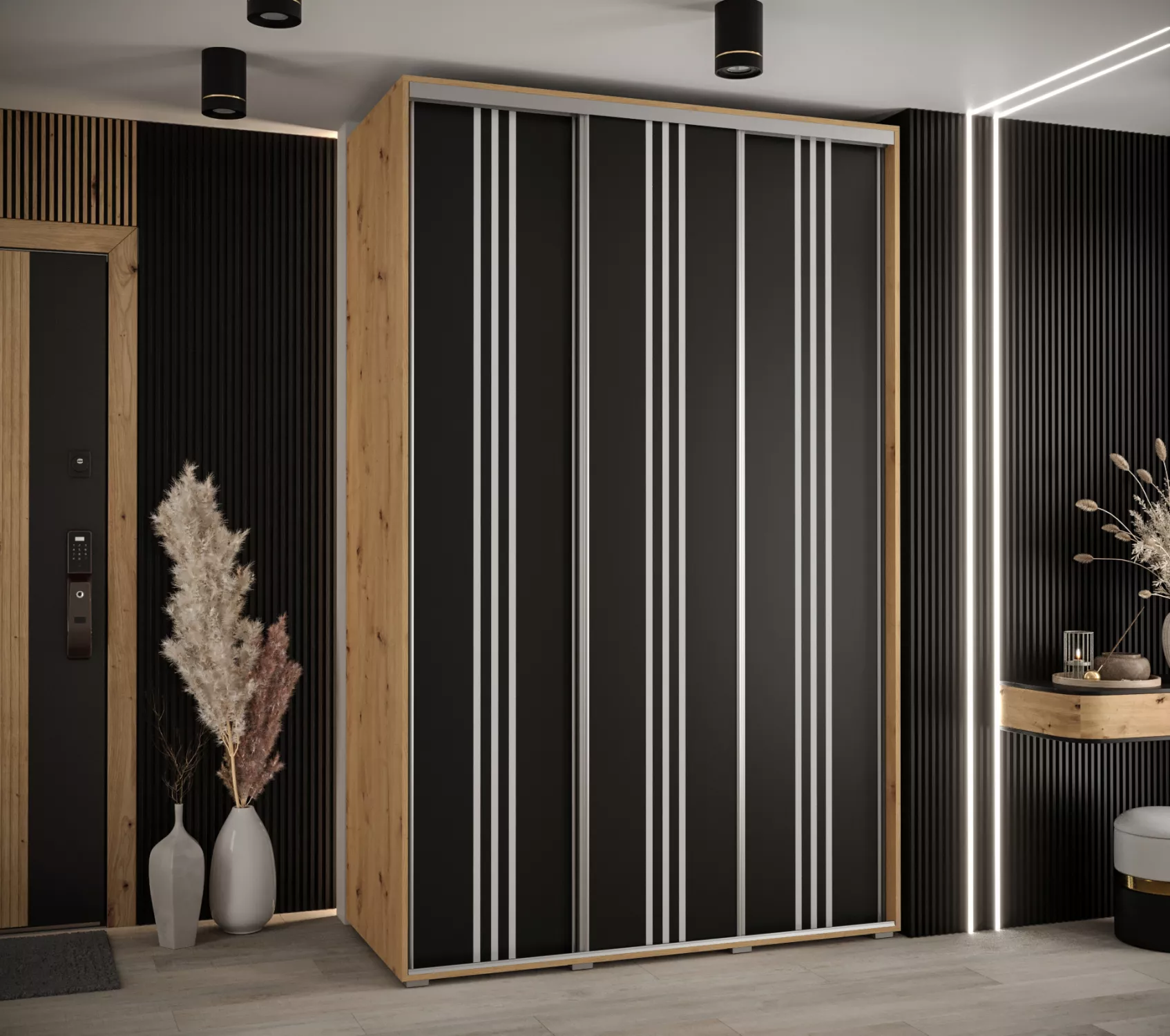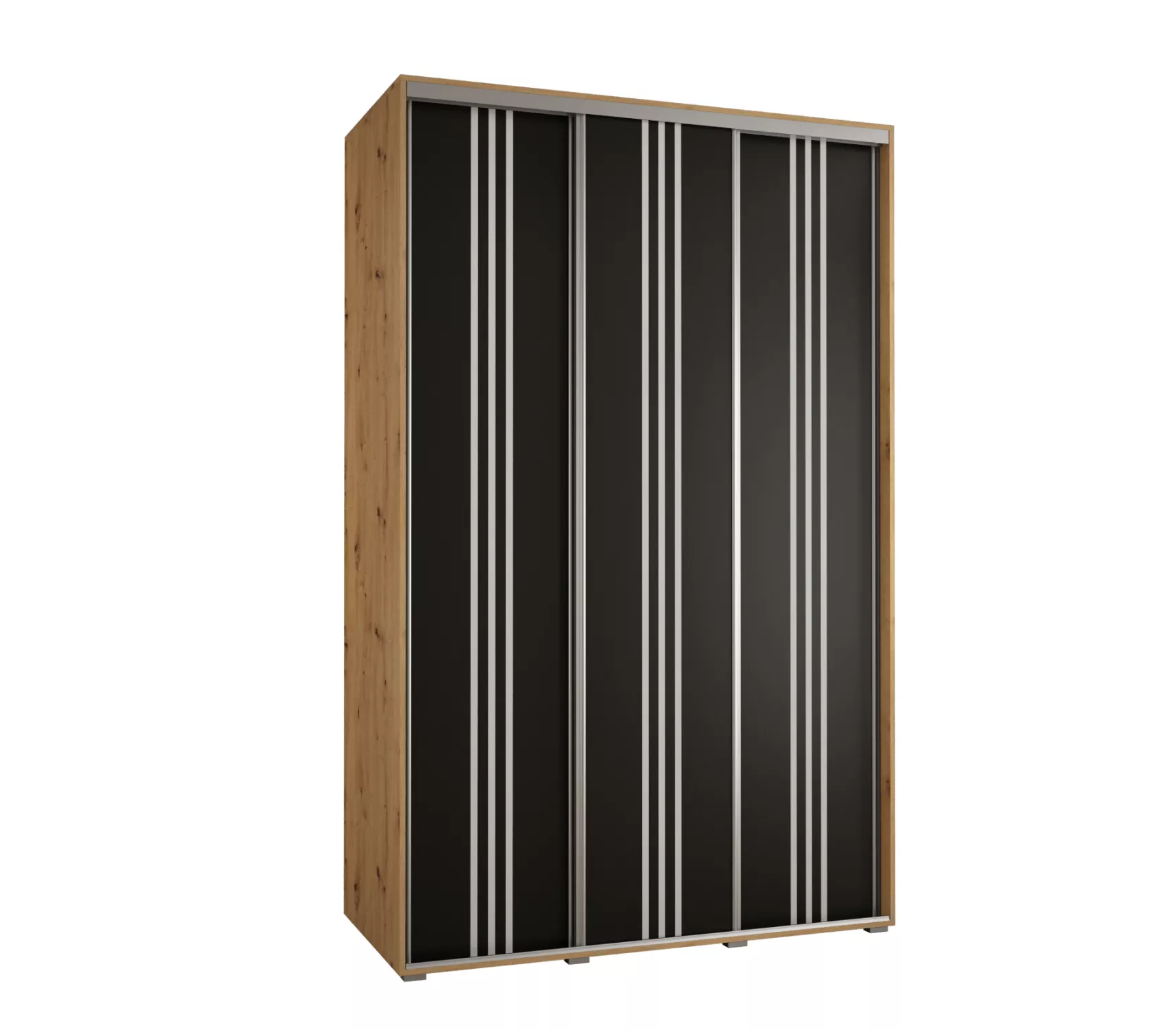Šatní skříň YVONA 6 - 150/60 cm, dub artisan / černá / stříbrná