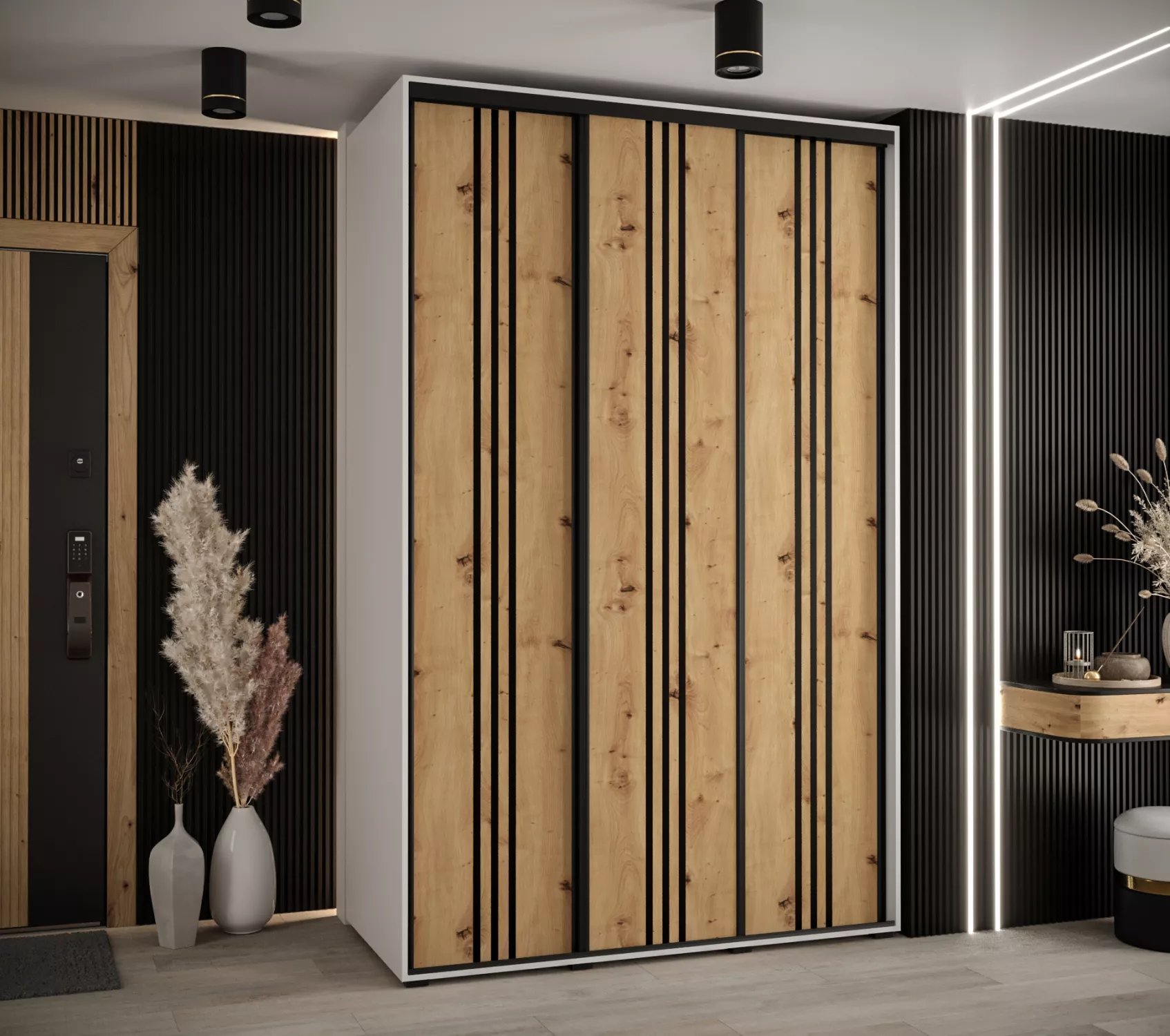 Šatní skříň YVONA 6 - 160/60 cm, bílá / dub artisan / černá