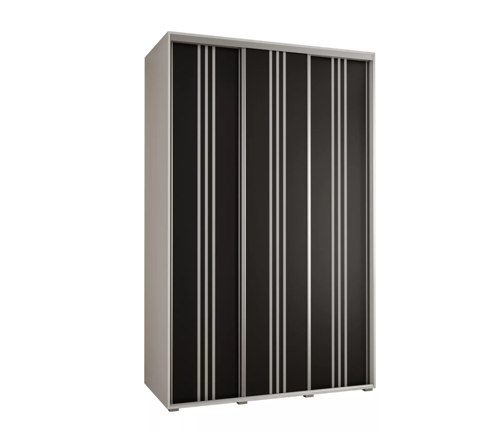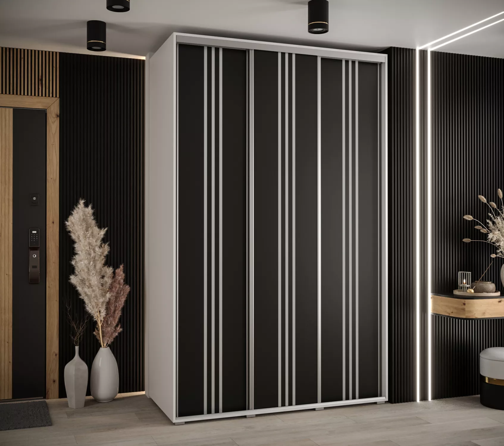 Šatní skříň YVONA 6 - 160/60 cm, bílá / černá / stříbrná