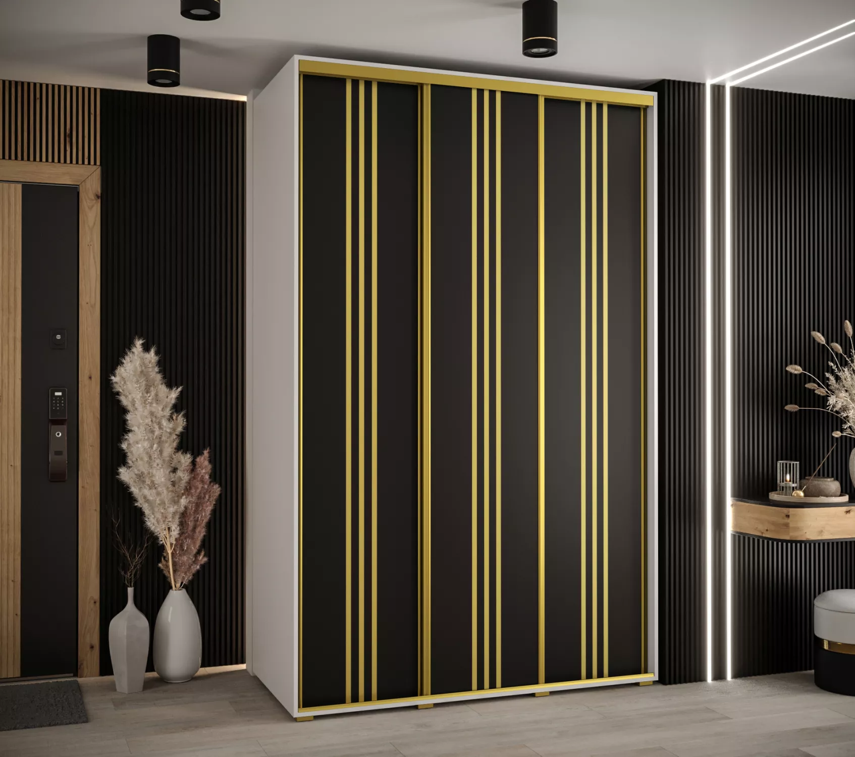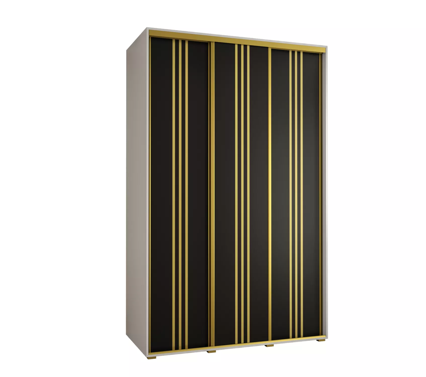 Šatní skříň YVONA 6 - 160/60 cm, bílá / černá / zlatá