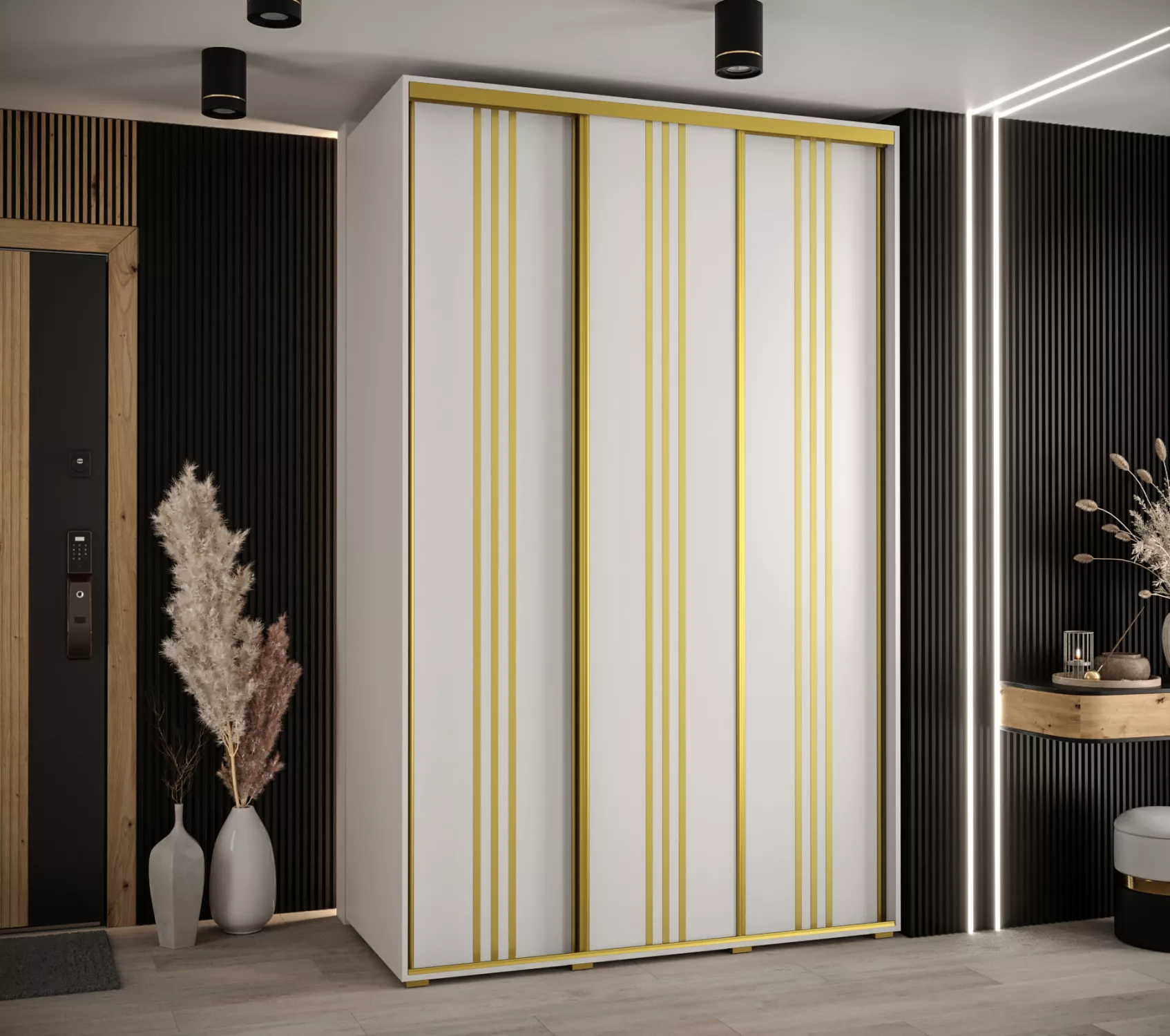 Šatní skříň YVONA 6 - 160/60 cm, bílá / zlatá