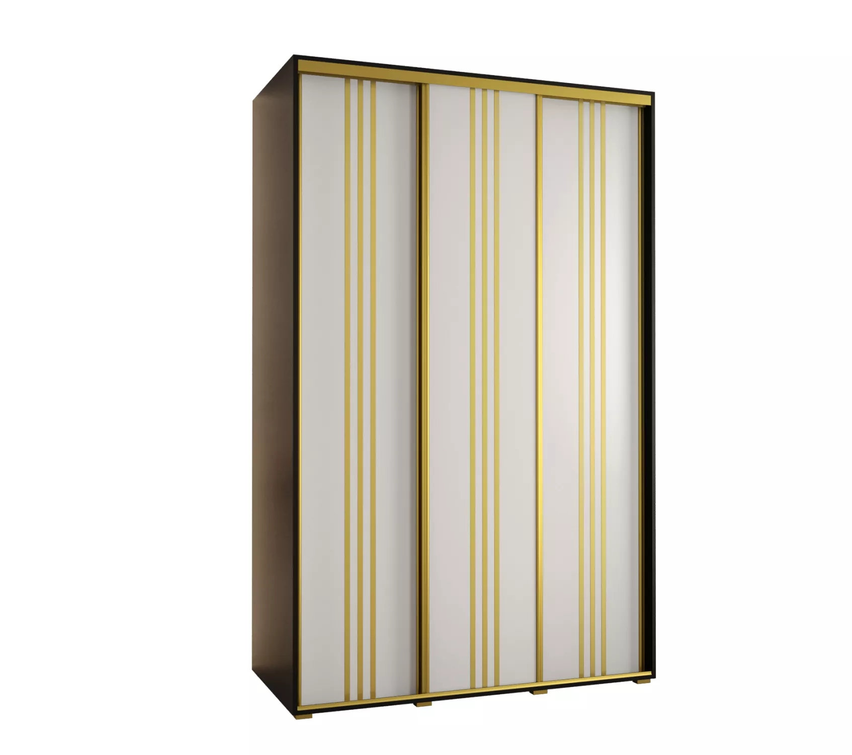 Šatní skříň YVONA 6 - 160/60 cm, černá / bílá / zlatá