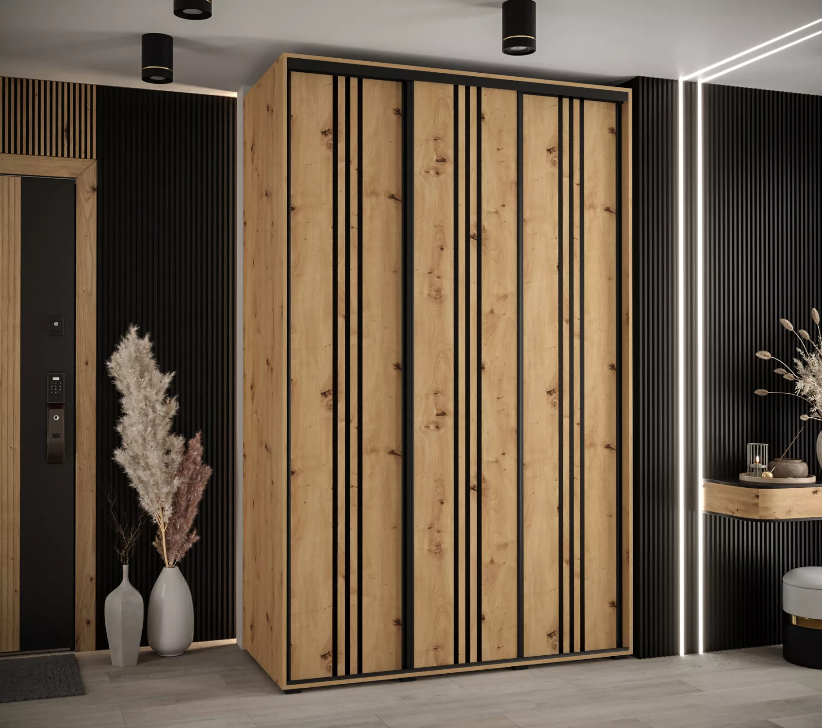 Šatní skříň YVONA 6 - 160/60 cm, dub artisan / černá