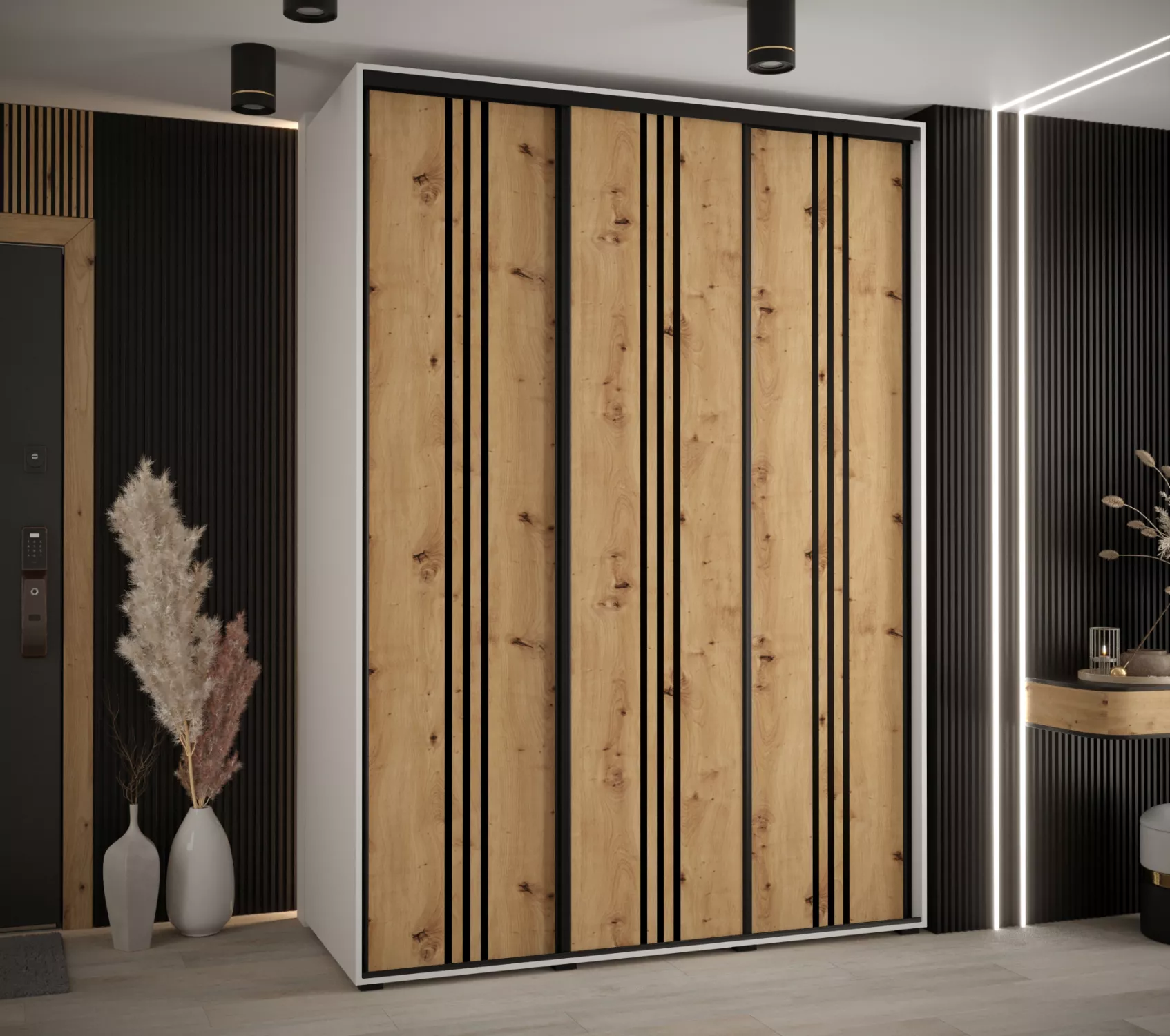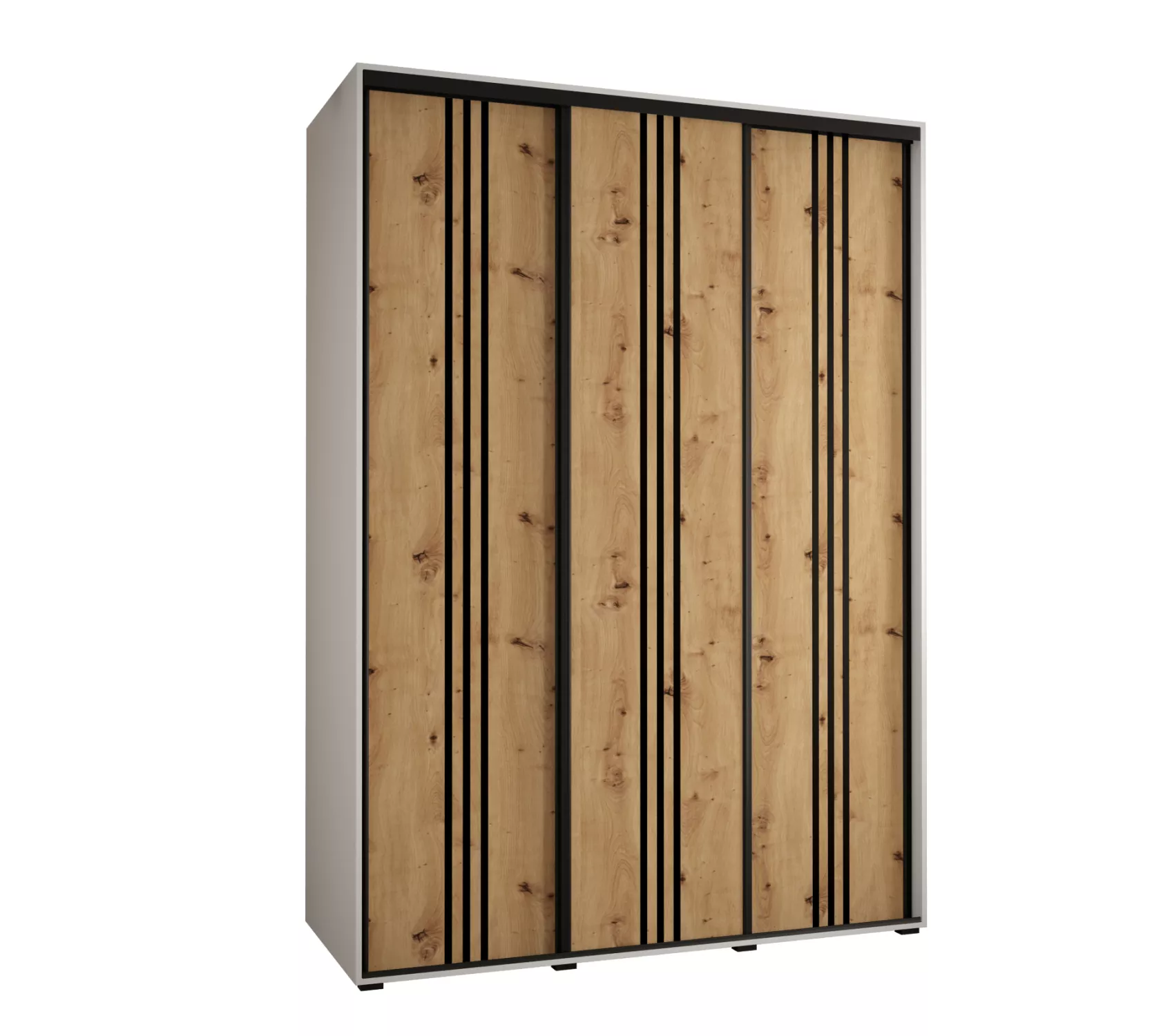Šatní skříň YVONA 6 - 170/60 cm, bílá / dub artisan / černá