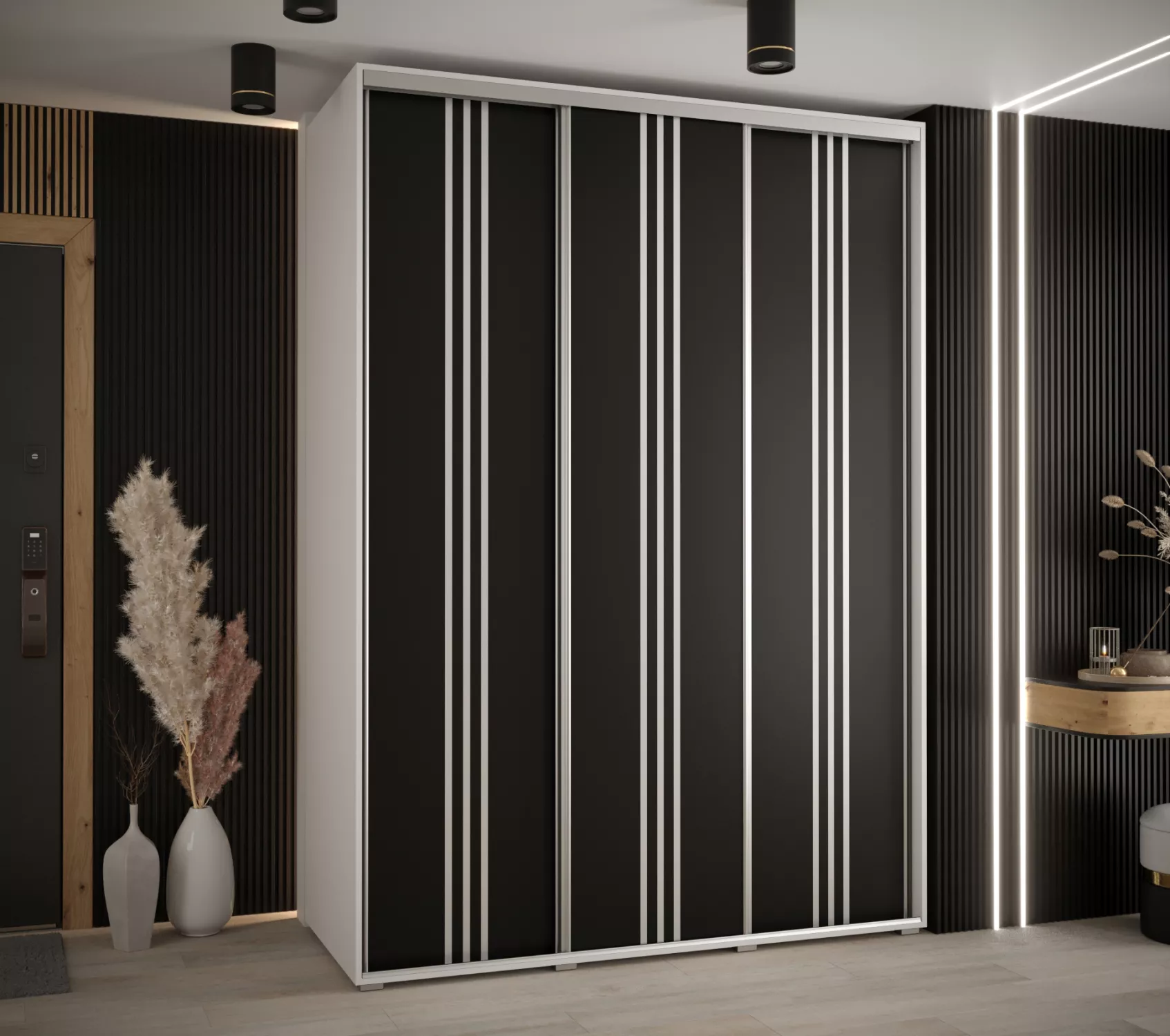 Šatní skříň YVONA 6 - 170/60 cm, bílá / černá / stříbrná