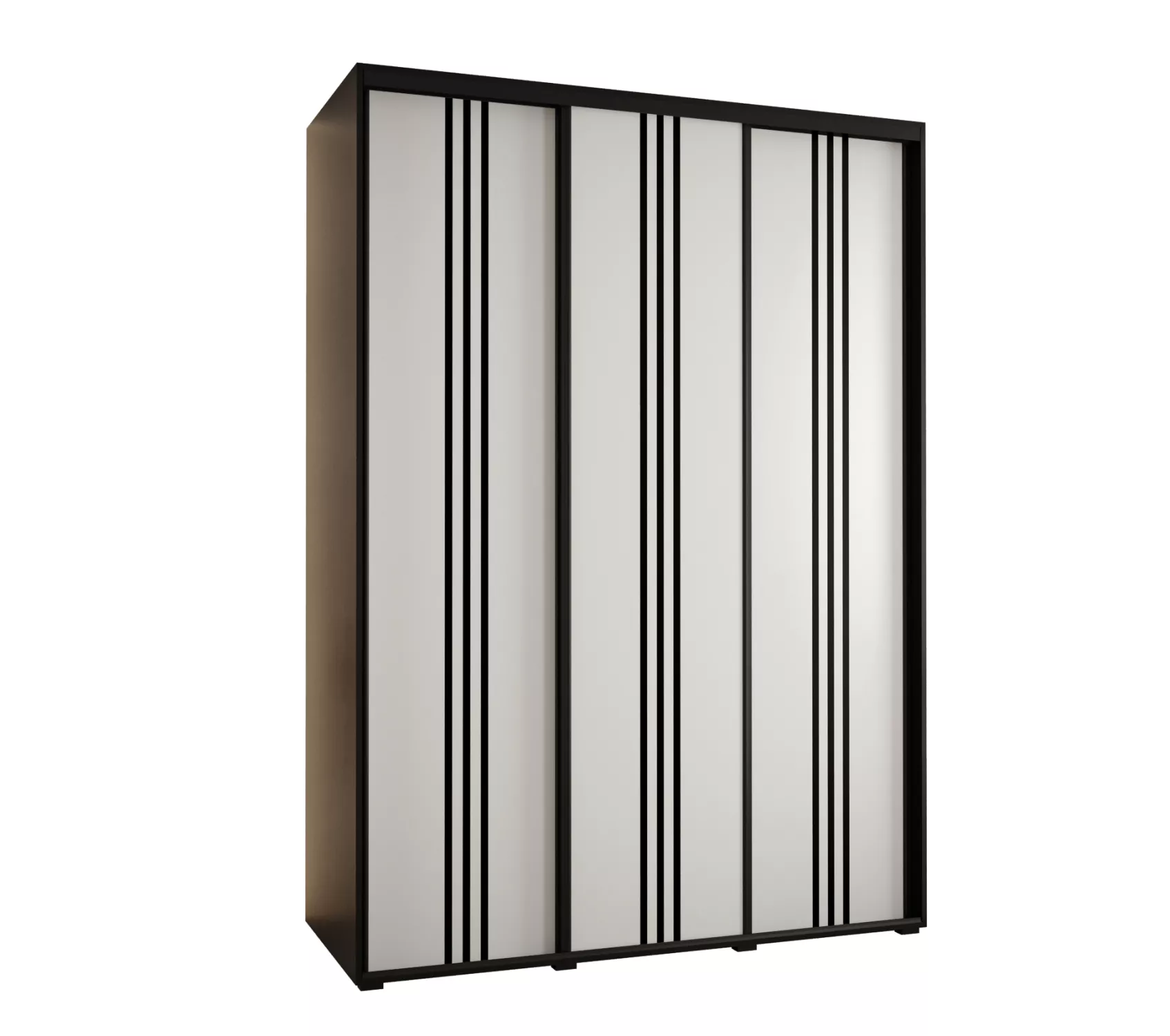 Šatní skříň YVONA 6 - 170/60 cm, černá / bílá / černá