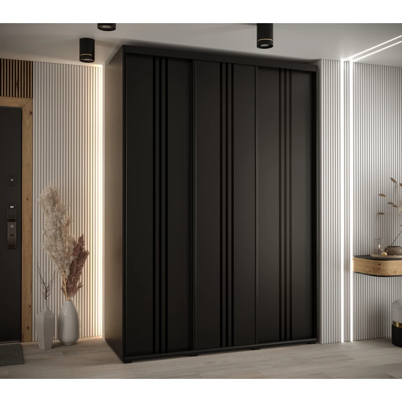 Šatní skříň YVONA 6 - 170/60 cm, černá / černá