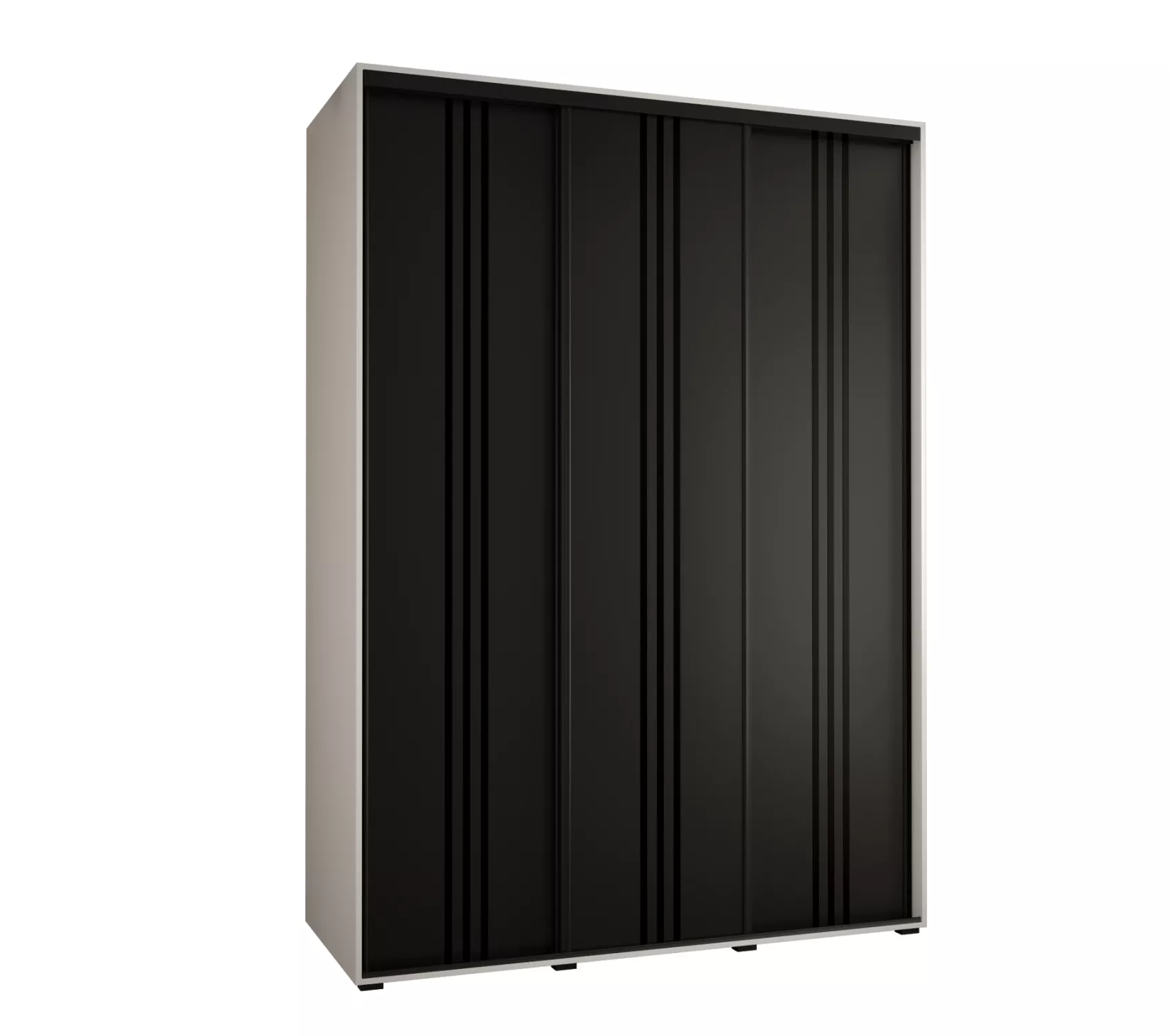 Šatní skříň YVONA 6 - 180/60 cm, bílá / černá / černá