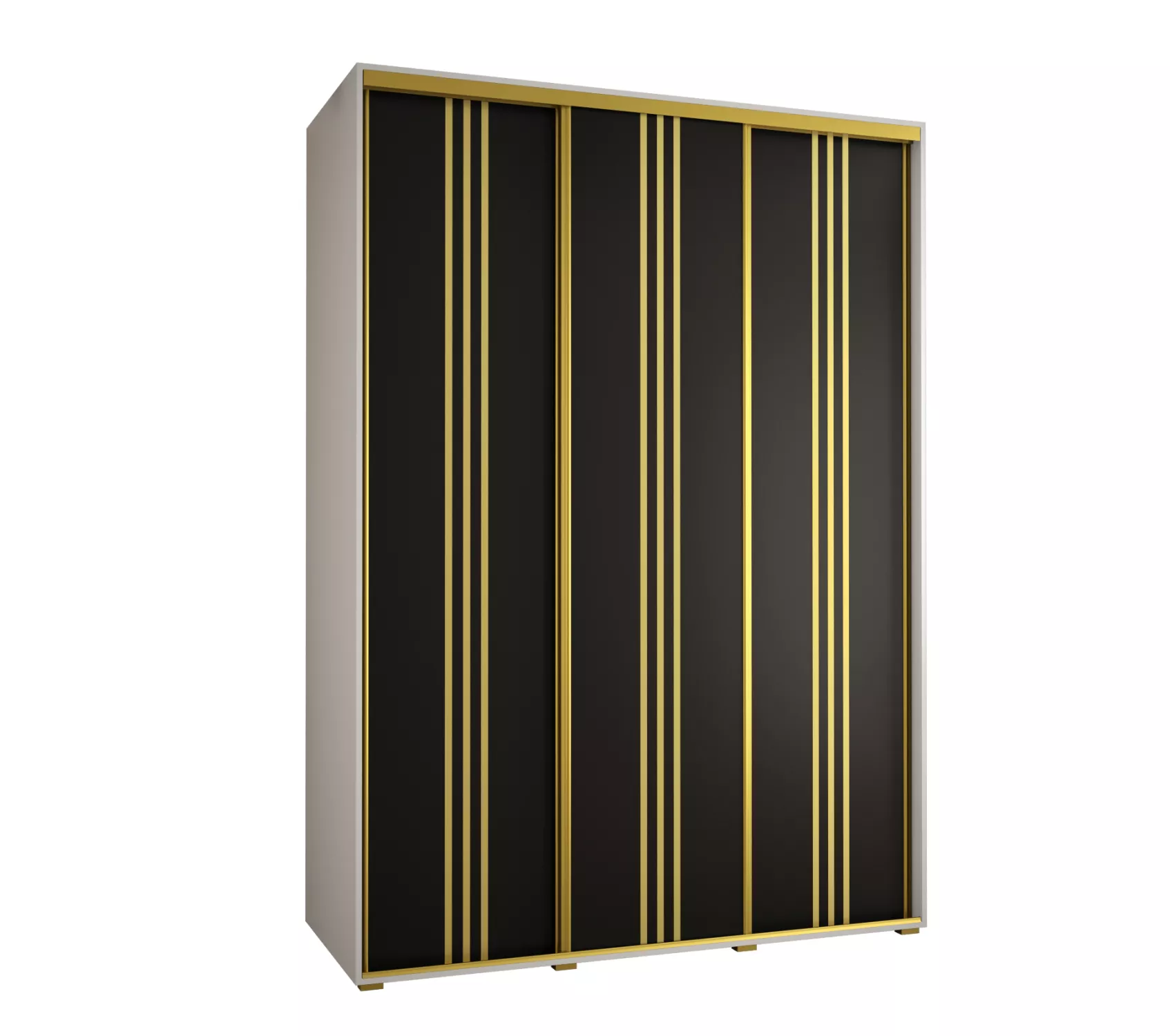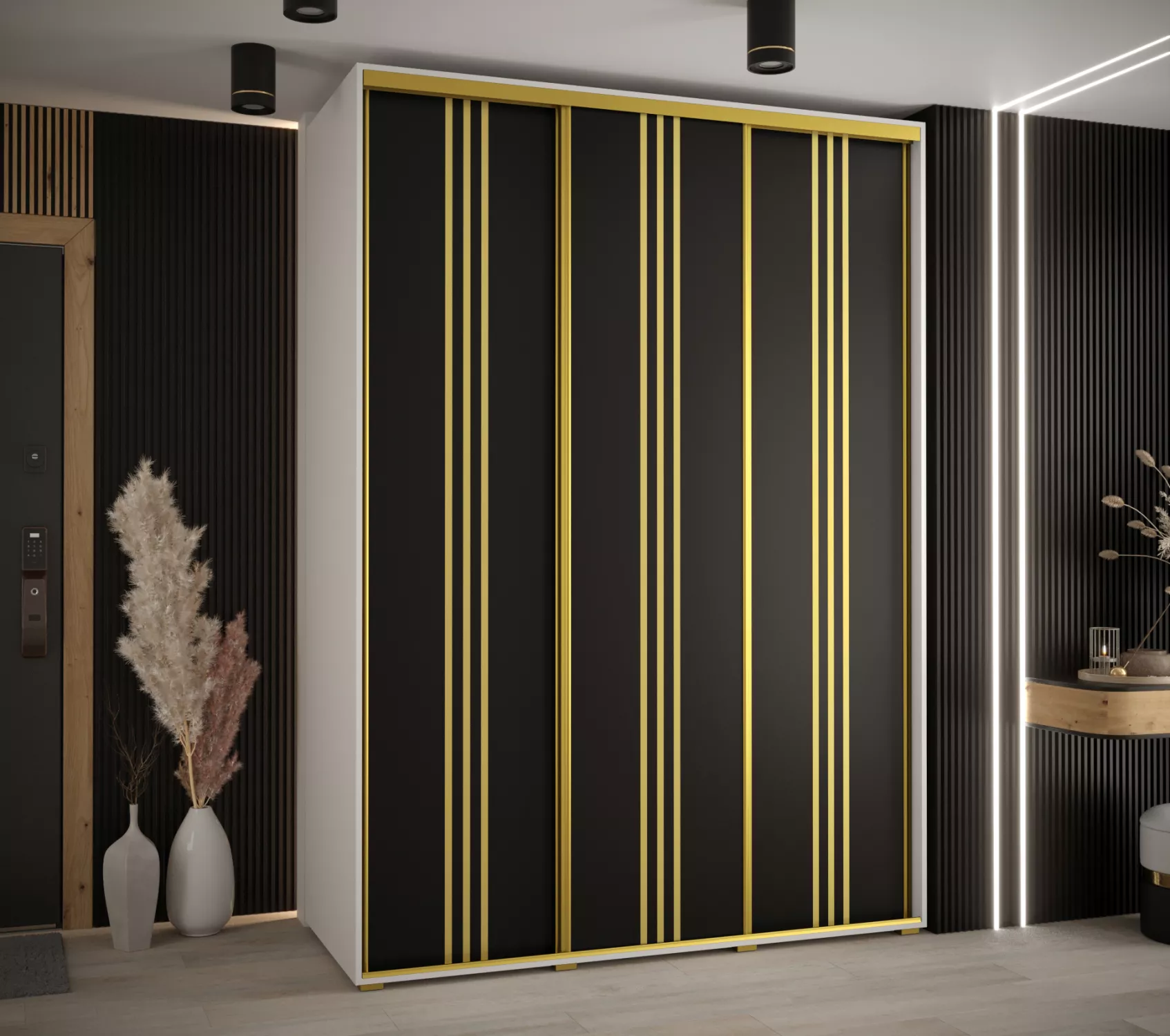 Šatní skříň YVONA 6 - 180/60 cm, bílá / černá / zlatá