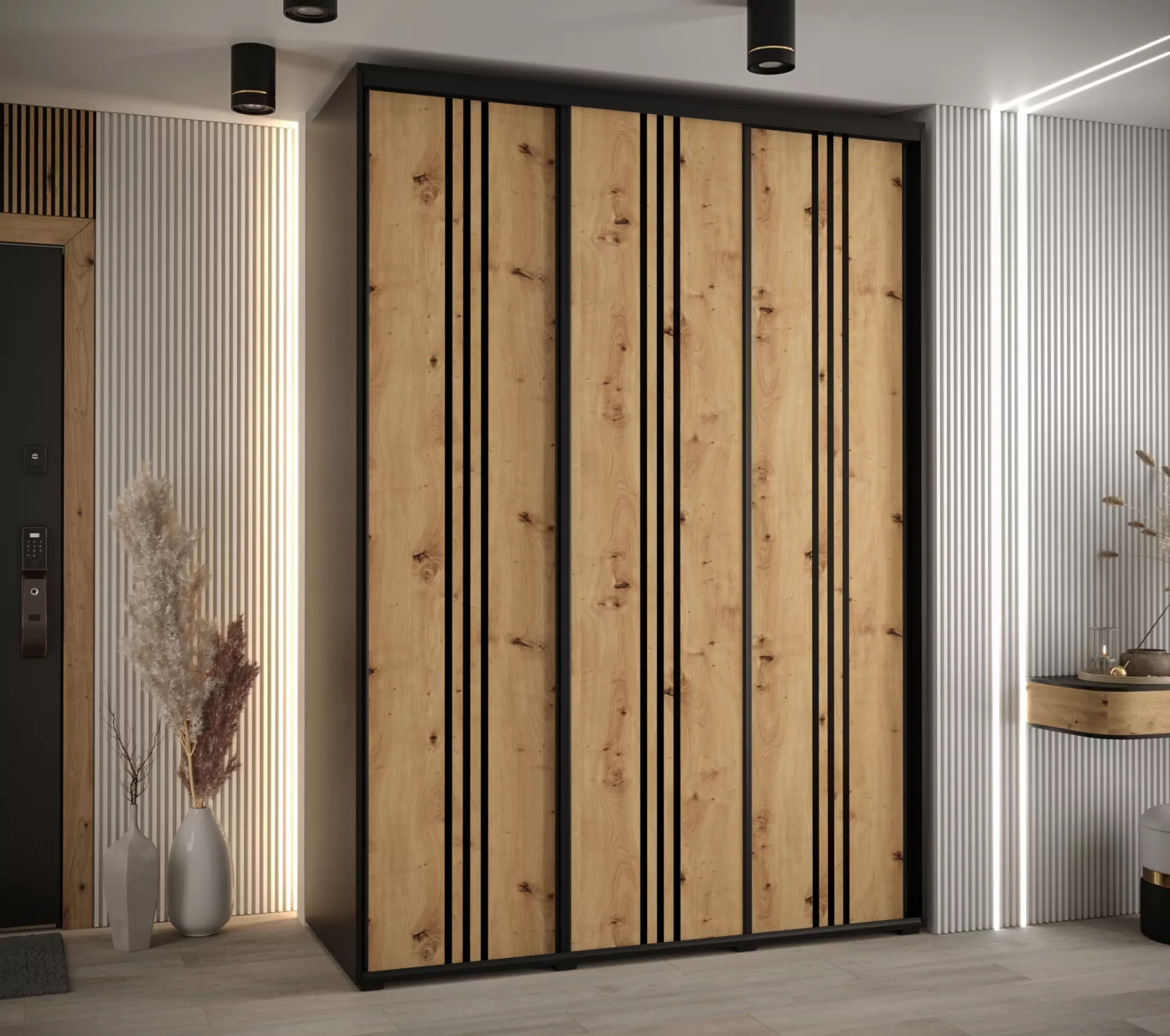 Šatní skříň YVONA 6 - 180/60 cm, černá / dub artisan / černá