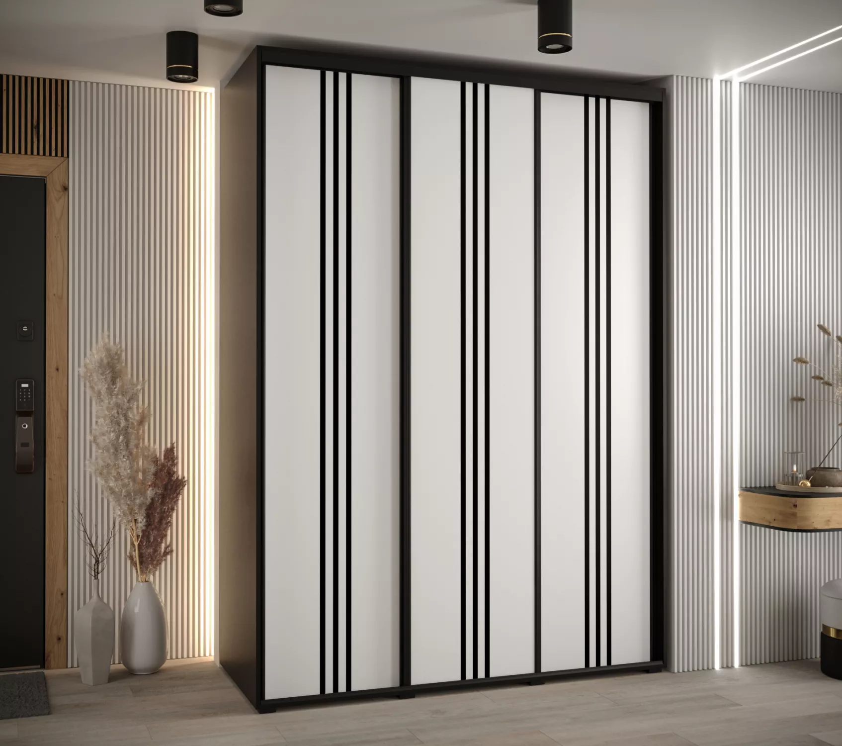 Šatní skříň YVONA 6 - 180/60 cm, černá / bílá / černá