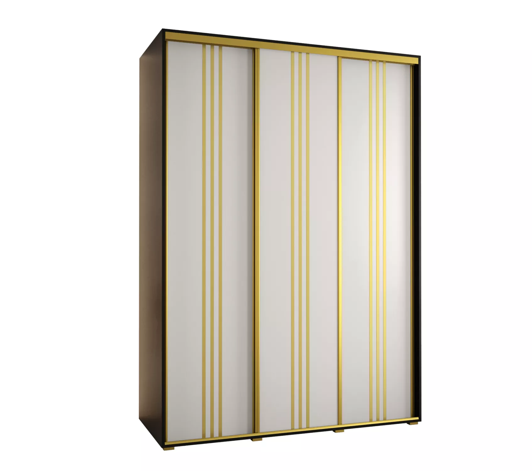 Šatní skříň YVONA 6 - 180/60 cm, černá / bílá / zlatá