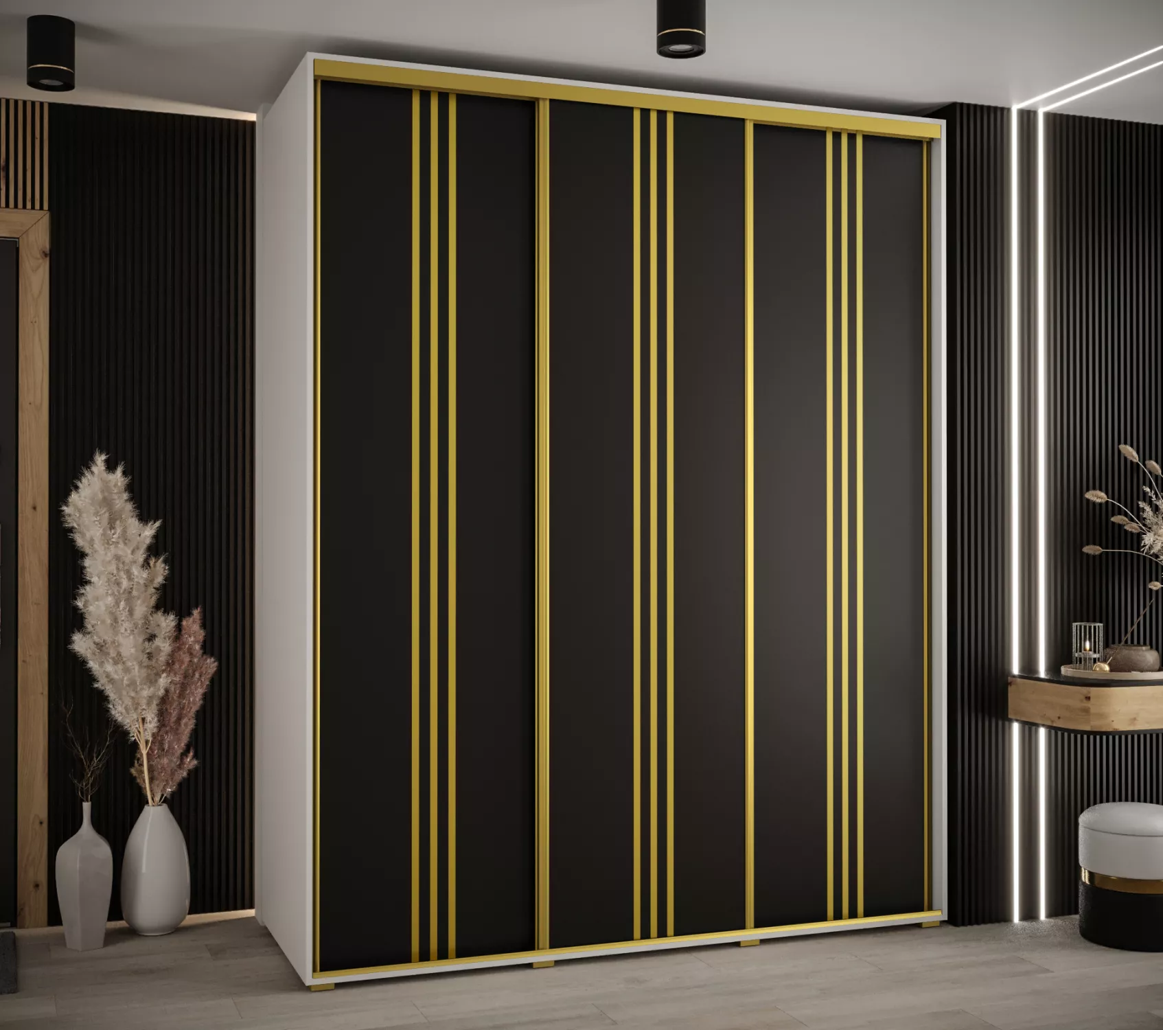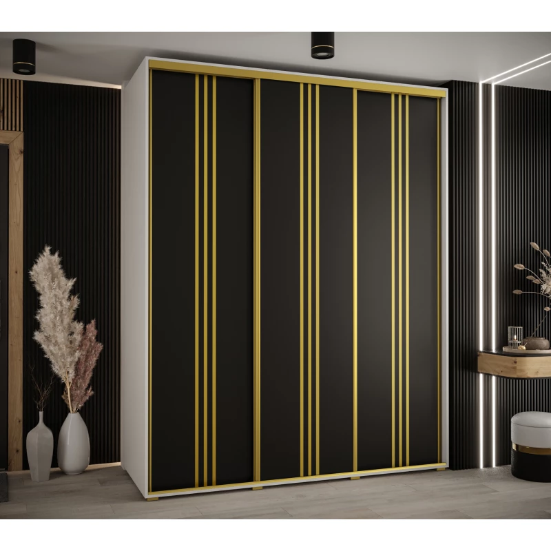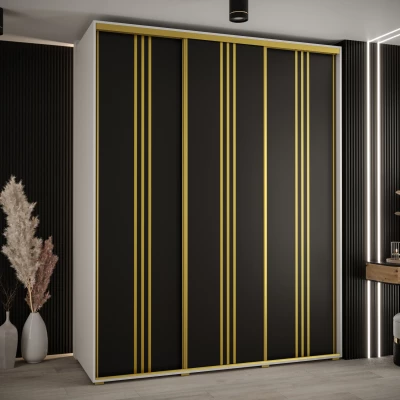 Šatní skříň YVONA 6 - 190/60 cm, bílá / černá / zlatá