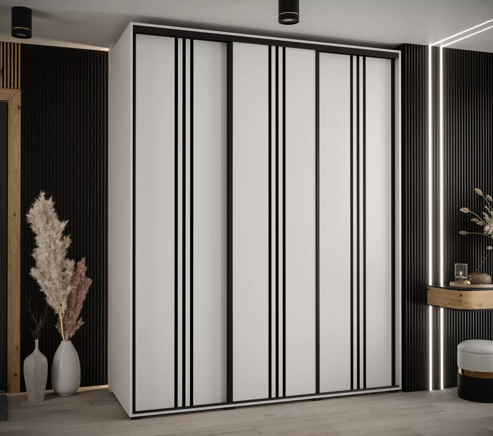 Šatní skříň YVONA 6 - 190/60 cm, bílá / černá