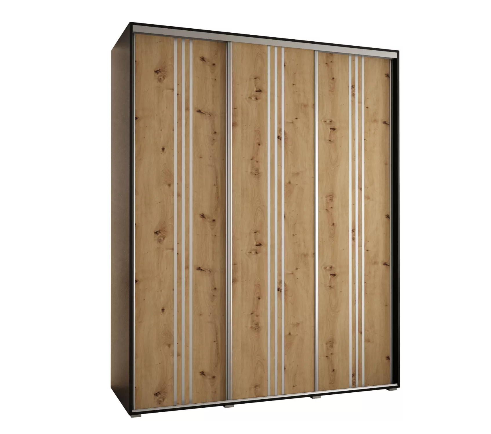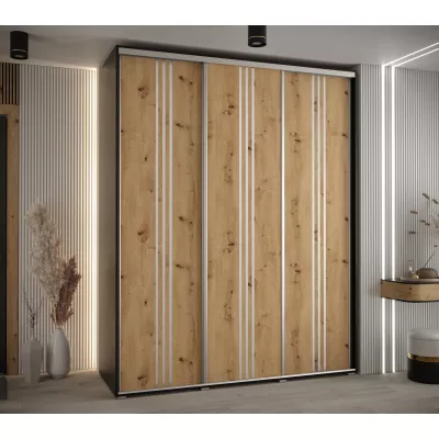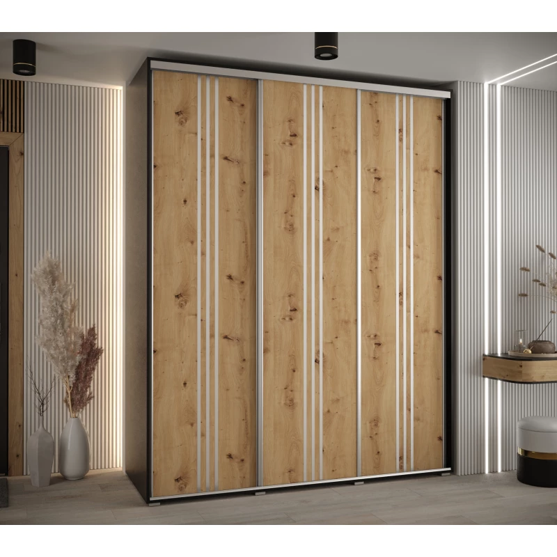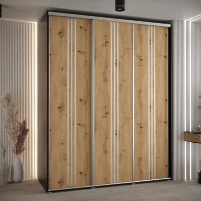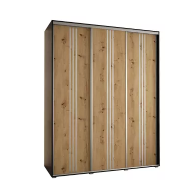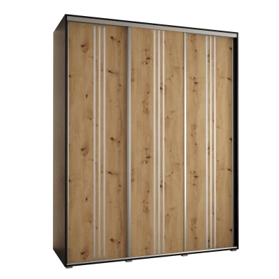 Šatní skříň YVONA 6 - 190/60 cm, černá / dub artisan / stříbrná
