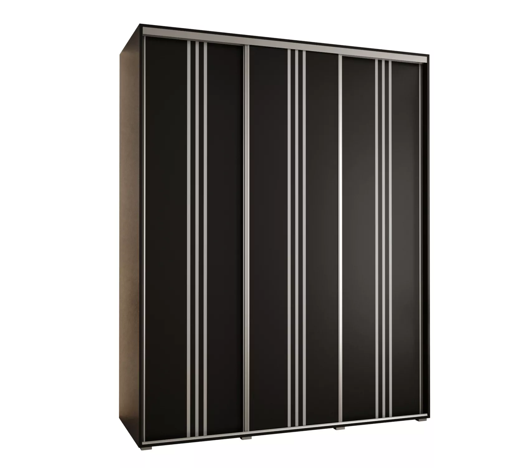 Šatní skříň YVONA 6 - 200/60 cm, černá / stříbrná