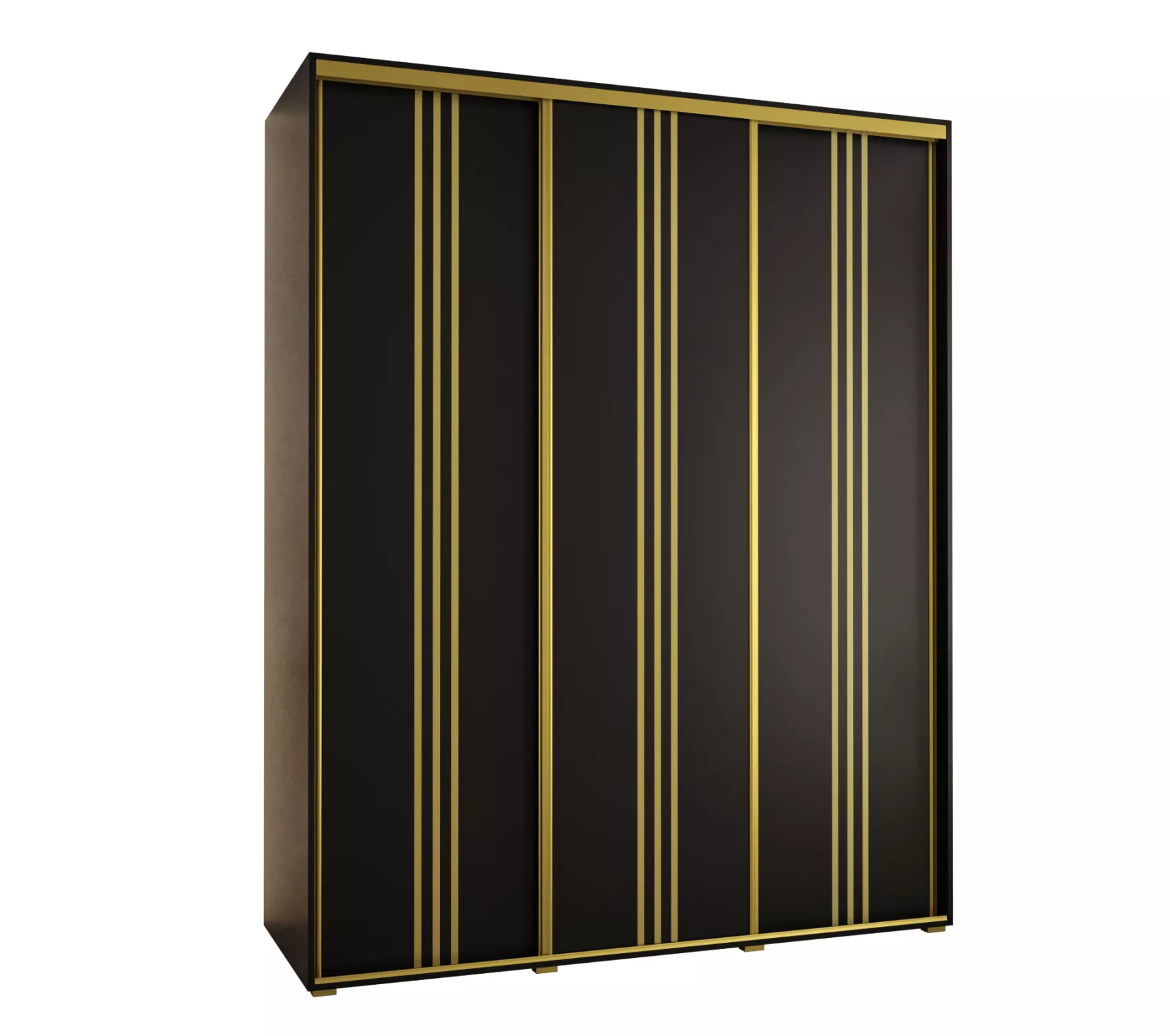 Šatní skříň YVONA 6 - 200/60 cm, černá / zlatá