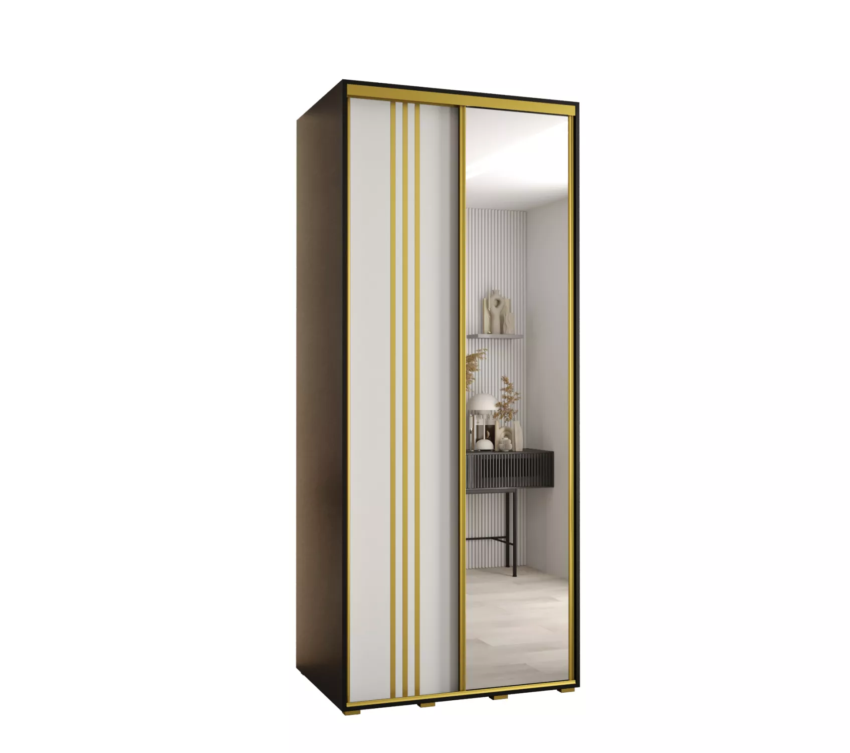 Šatní skříň YVONA 7 - 120/60 cm, černá / bílá / zlatá