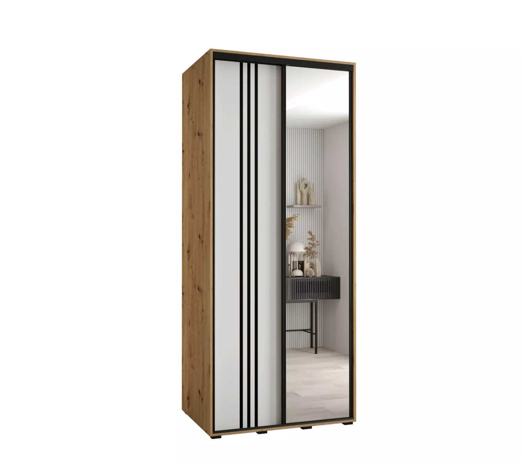 Šatní skříň YVONA 7 - 120/60 cm, dub artisan / bílá / černá