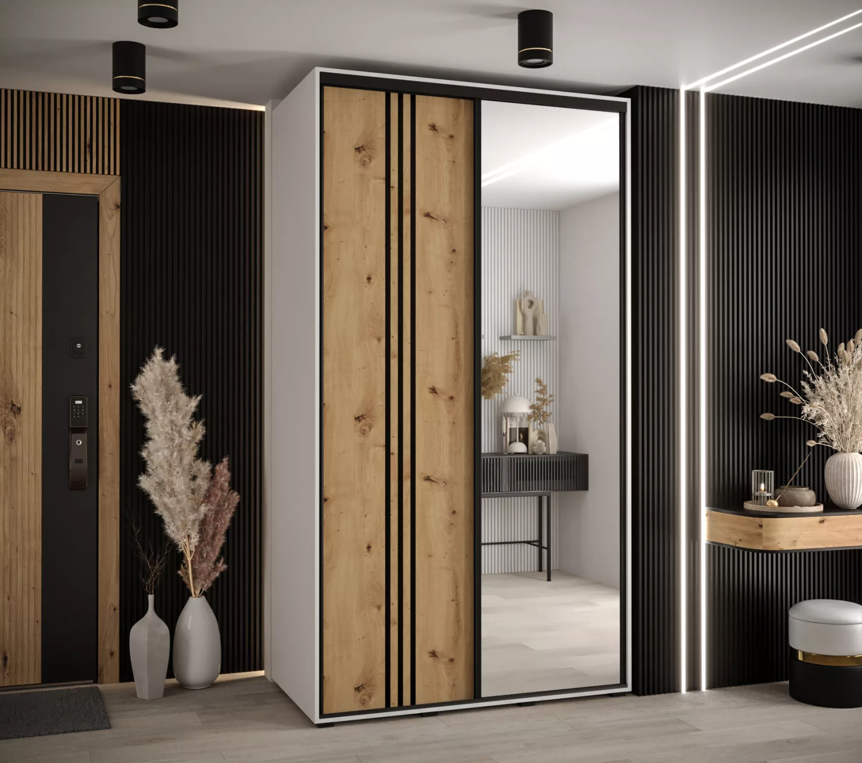 Šatní skříň YVONA 7 - 130/60 cm, bílá / dub artisan / černá