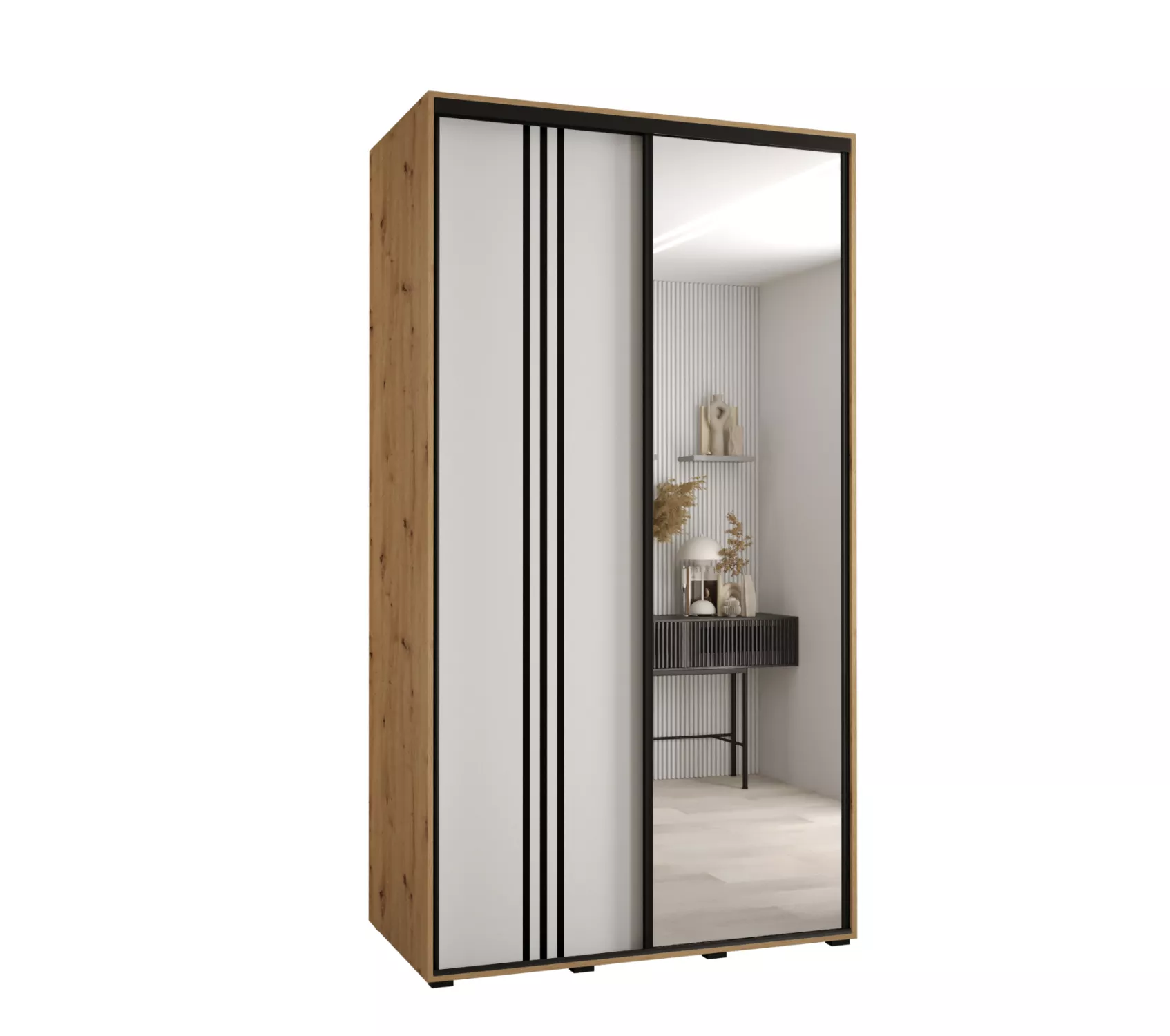 Šatní skříň YVONA 7 - 140/60 cm, dub artisan / bílá / černá