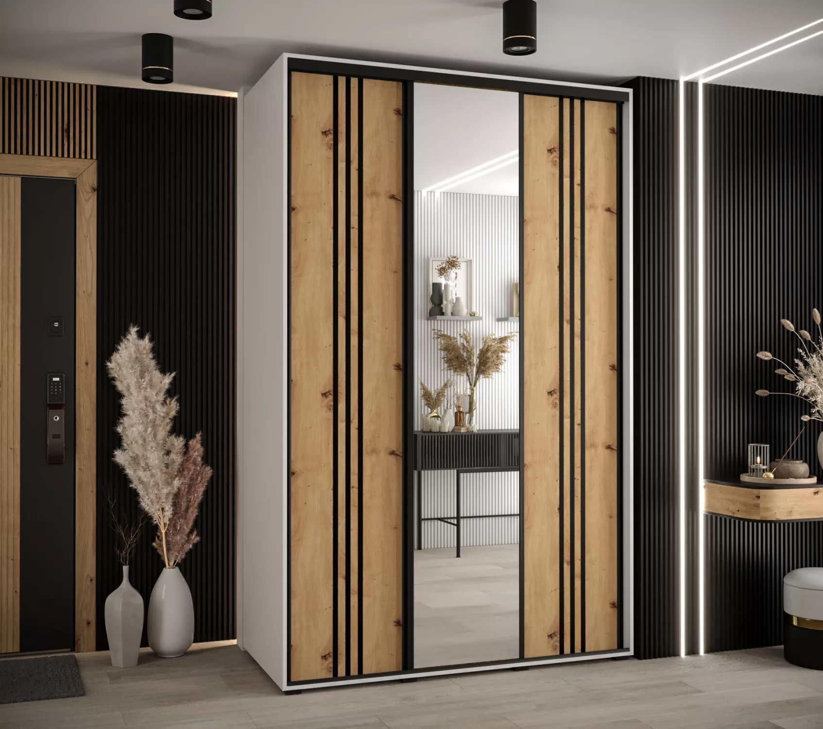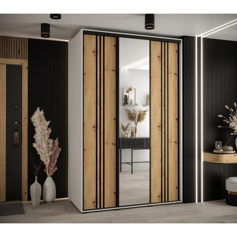 Šatní skříň YVONA 7 - 150/60 cm, bílá / dub artisan / černá