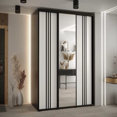 Šatní skříň YVONA 7 - 150/60 cm, černá / bílá / černá
