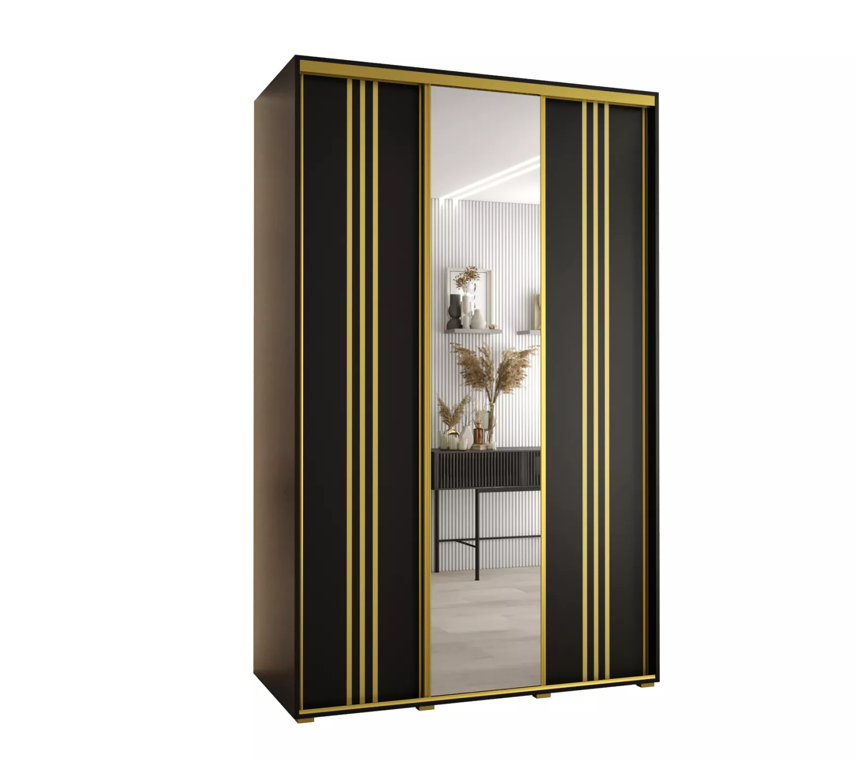 Šatní skříň YVONA 7 - 150/60 cm, černá / zlatá